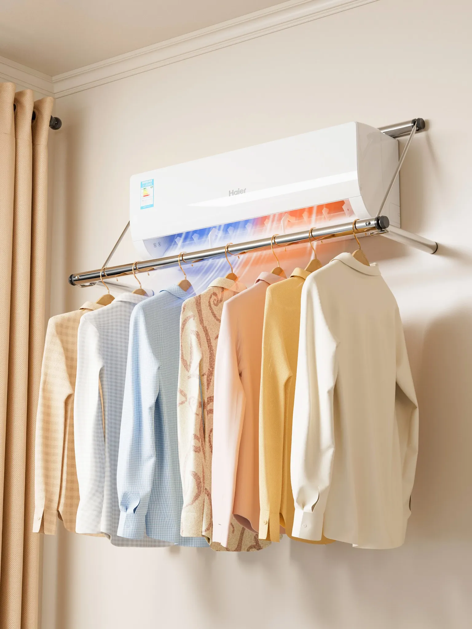 エアコン風口対応の壁掛け衣類干しラック - ステンレス製シングルバーで省スペース!室内での乾燥と干し物に最適。お部屋をスッキリ整理して、快適な生活を実現しましょう!