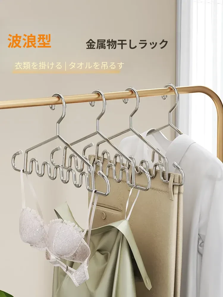 家庭用ステンレス製波浪型滑り止めハンガー - バルコニーでの下着やキャミソールの収納に最適な便利アイテム!衣類をしっかり乾燥させ、スペースを有効活用できます。