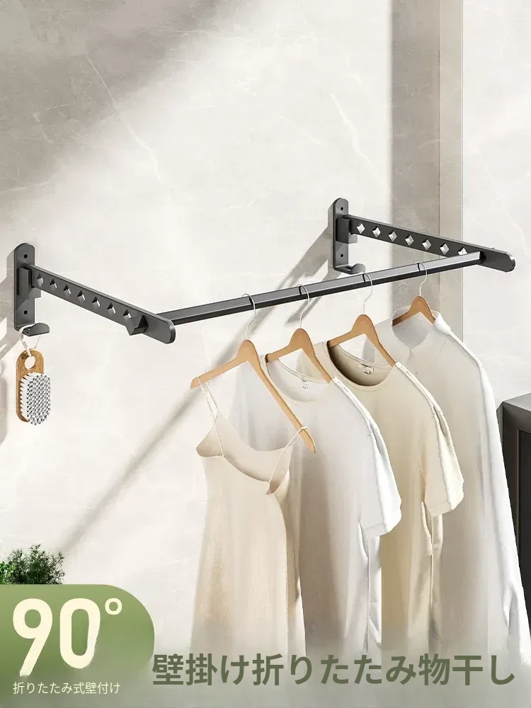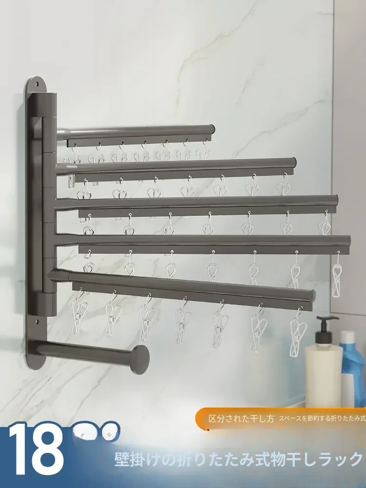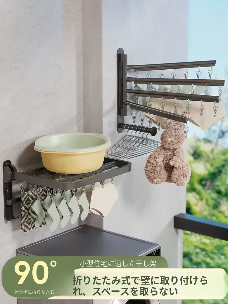 折りたたみ式壁掛け衣類ハンガー - スペースを有効活用!隠れたバルコニーのように使える魔法の道具、伸縮式で洗面所にも最適。おしゃれに干せて、生活空間をスッキリ!