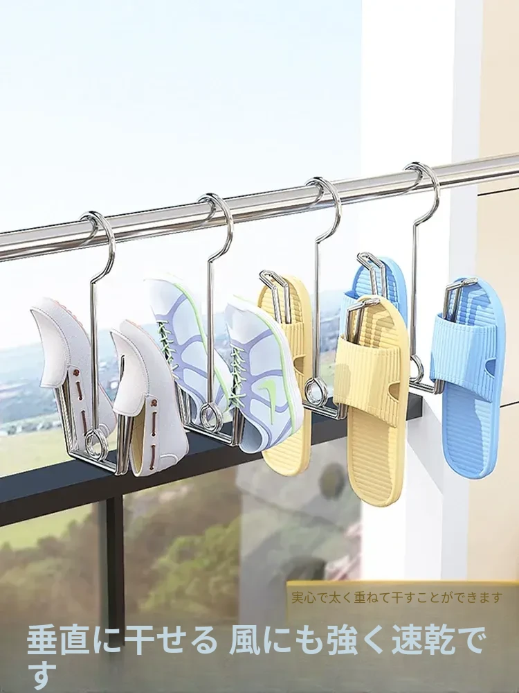 家庭用靴子干燥ラック - ステンレス製のバルコニー用シューズハンガー、靴を掛けるフック付き、屋外でのサンダル乾燥にも最適な便利アイテム!