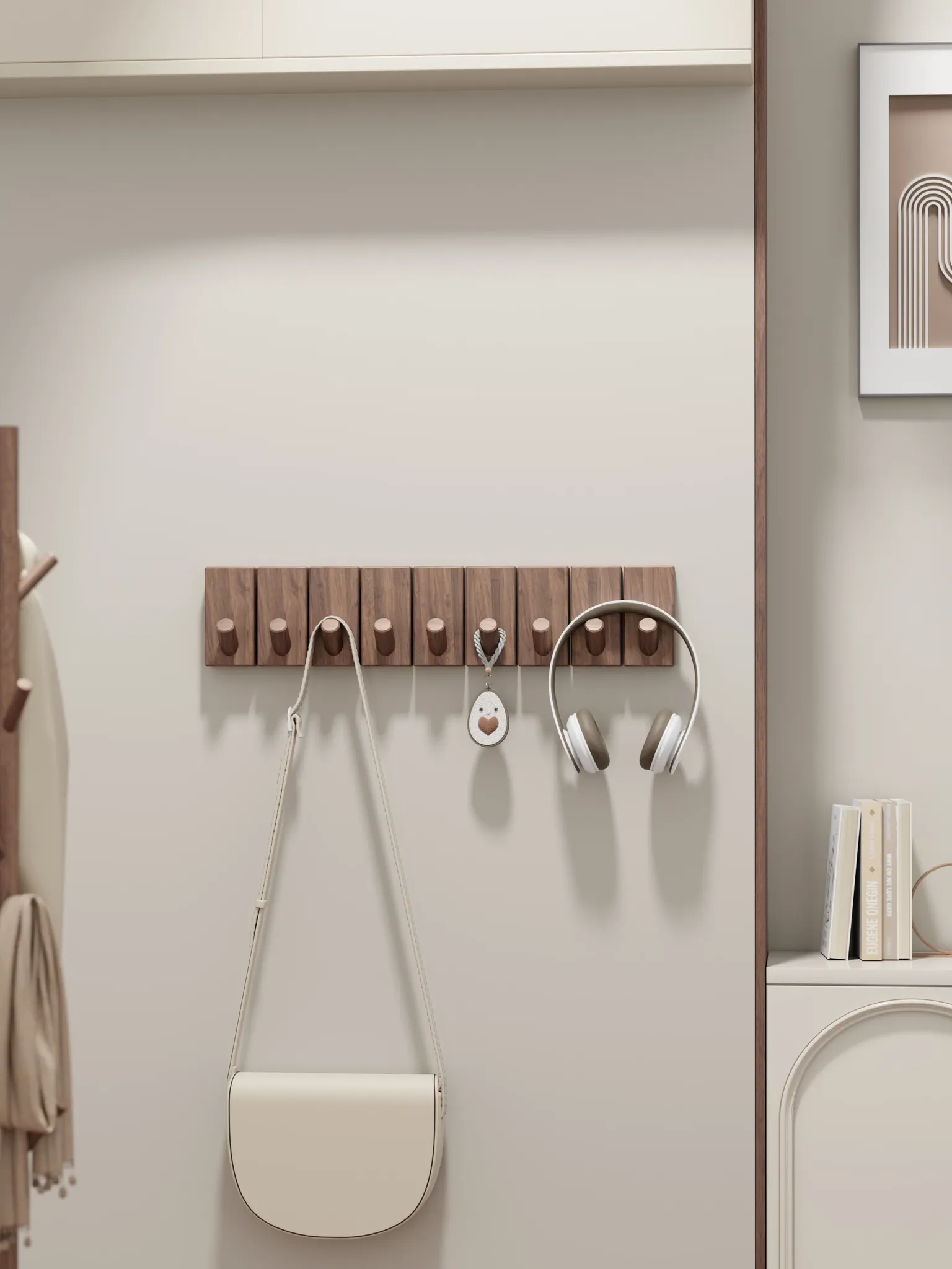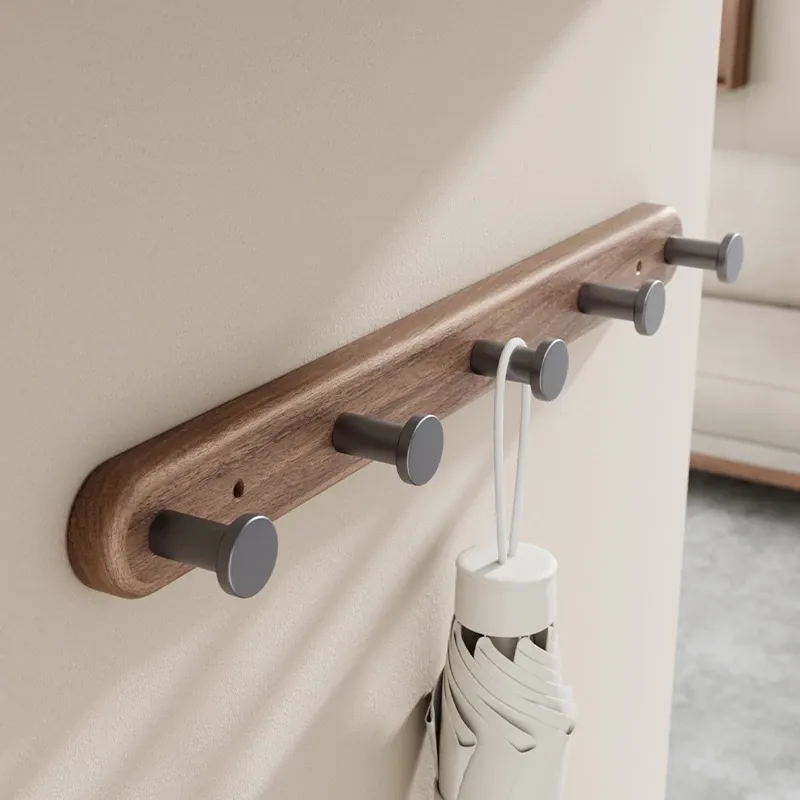 Walnut Wood Wall-Mounted Coat Rack - Strong Adhesive Hooks for Easy Installation, No Drilling Required - Stylish and Functional Hanging Solution for Your Home