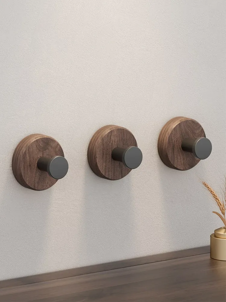 Strong Adhesive Walnut Wood Hooks - No Drilling Needed, Perfect for Bathrooms and Entryways, Creative Wall-Mounted Coat Hangers