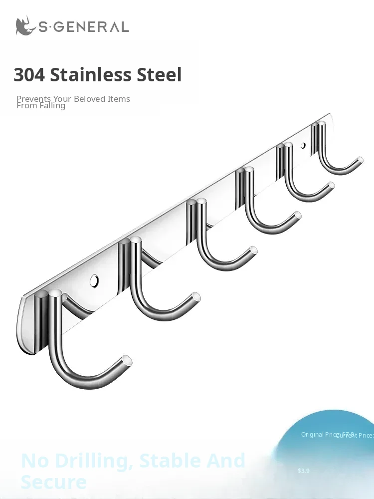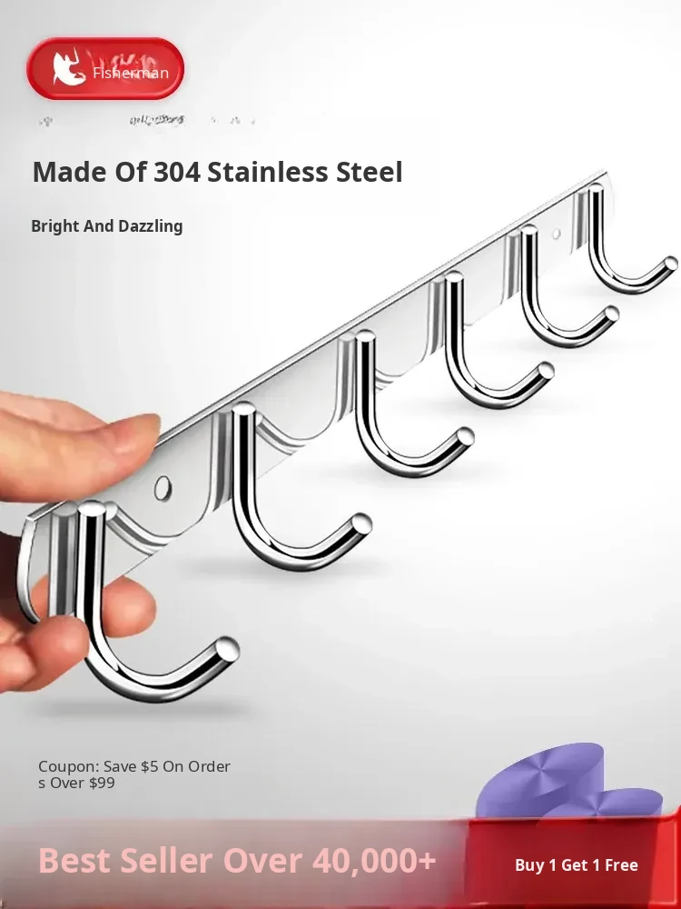Heavy-Duty 304 Stainless Steel Wall Hooks - No Drill, No Nail, Easy Adhesive Installation for Kitchen & Home - Strong Load-Bearing Hanging Solution