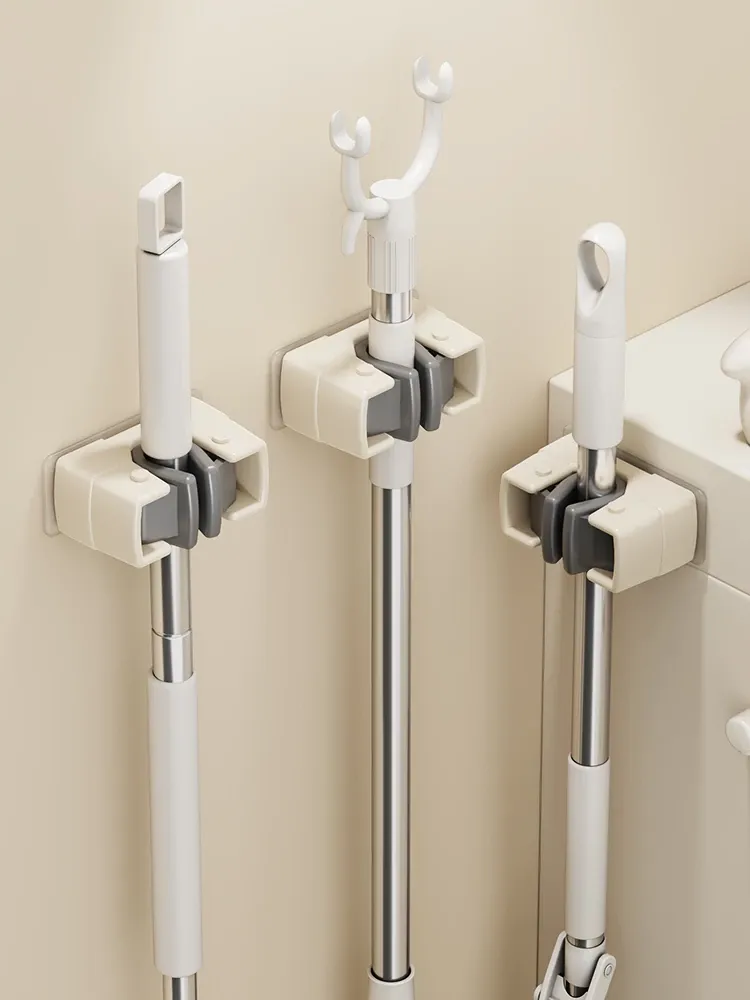 Creamy Wall-Mounted Mop and Cloth Holder - No Drill Bathroom and Balcony Storage Rack for Brooms and Mops, Perfect for Organized Cleaning!
