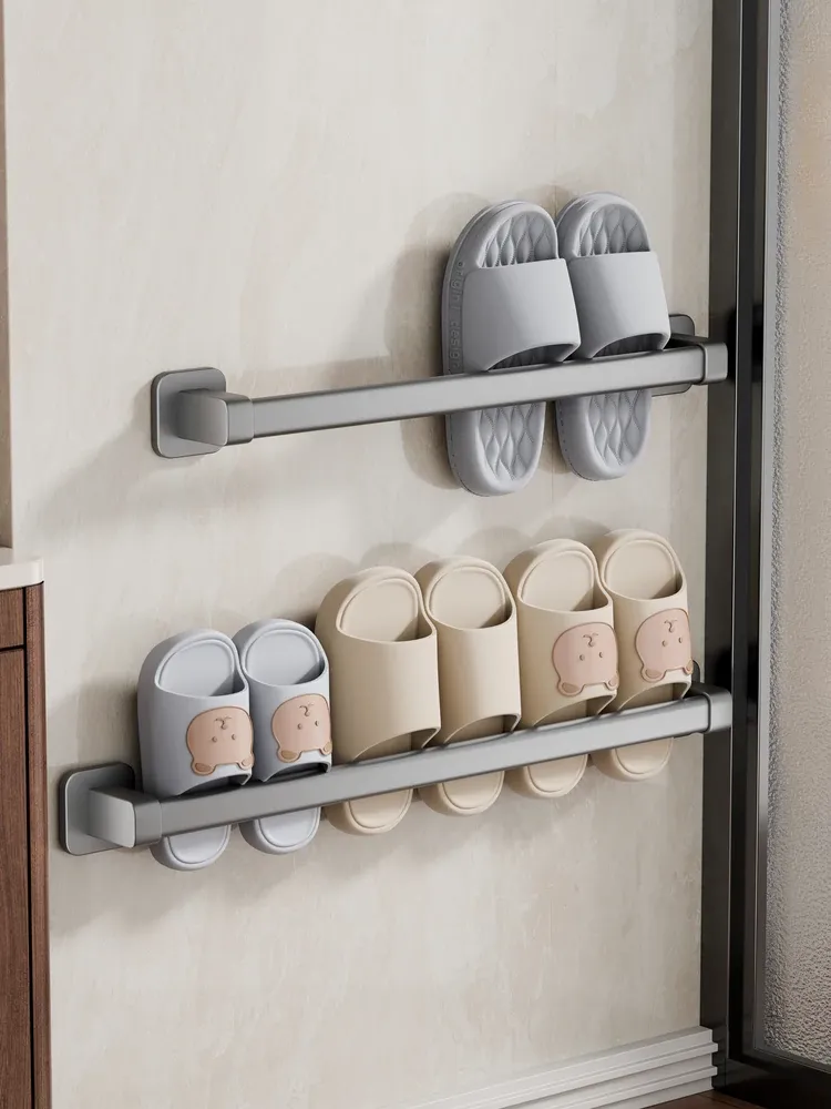 No-Drill Bathroom Slipper Rack - Wall-Mounted Shoe Organizer for Easy Storage and Drainage, Perfect for Your Restroom or Behind the Door!