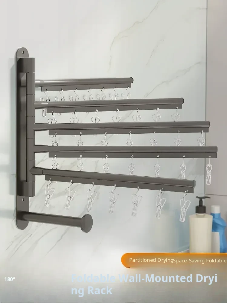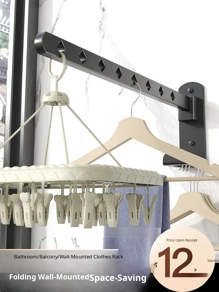 Wall-Mounted Foldable Clothes Drying Rack - No Drilling Required! Perfect for Balconies and Bathrooms, This Discreet Clothes Hanger is Your Ultimate Drying Solution. Keep Your Space Tidy and Stylish!