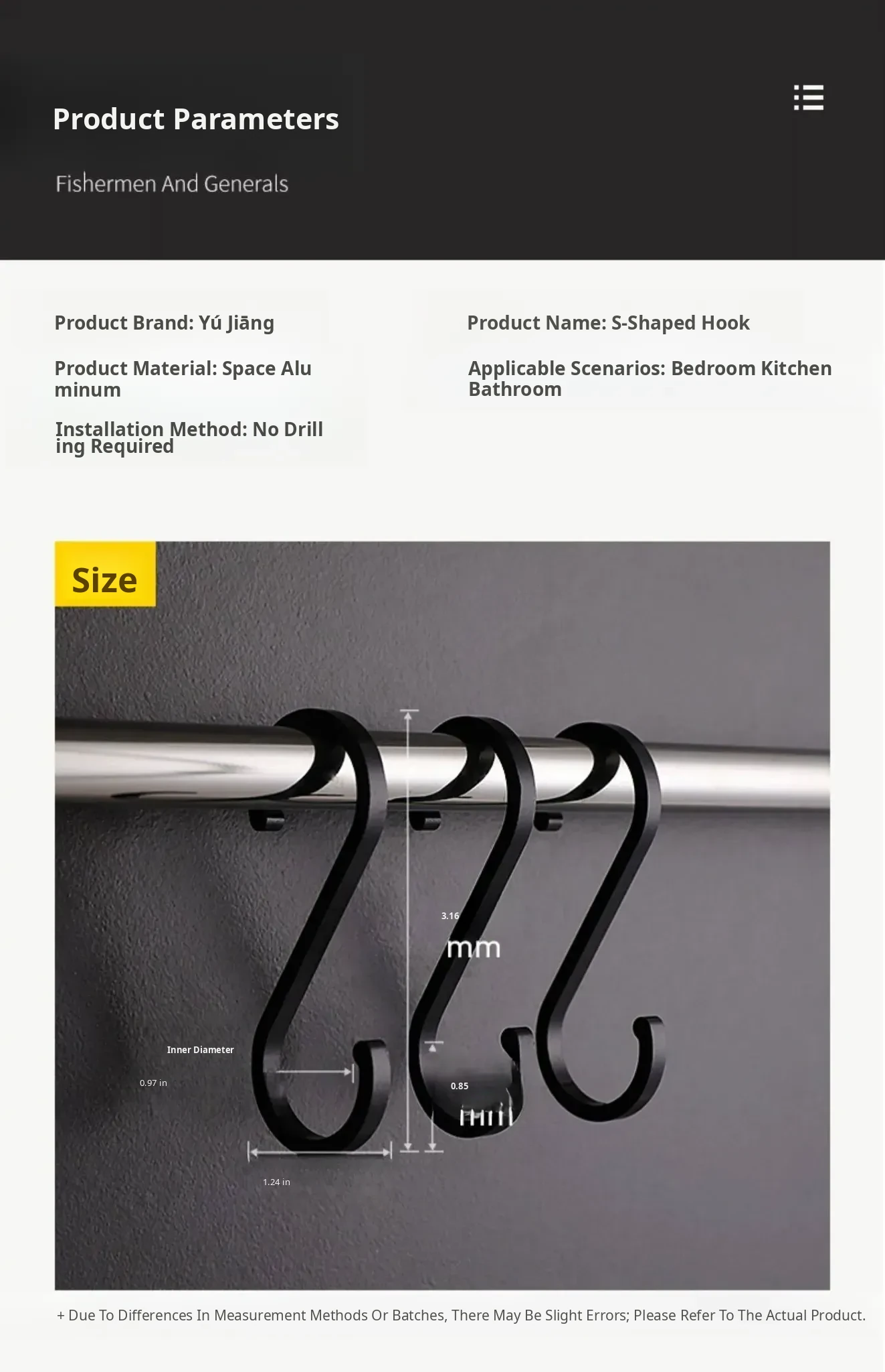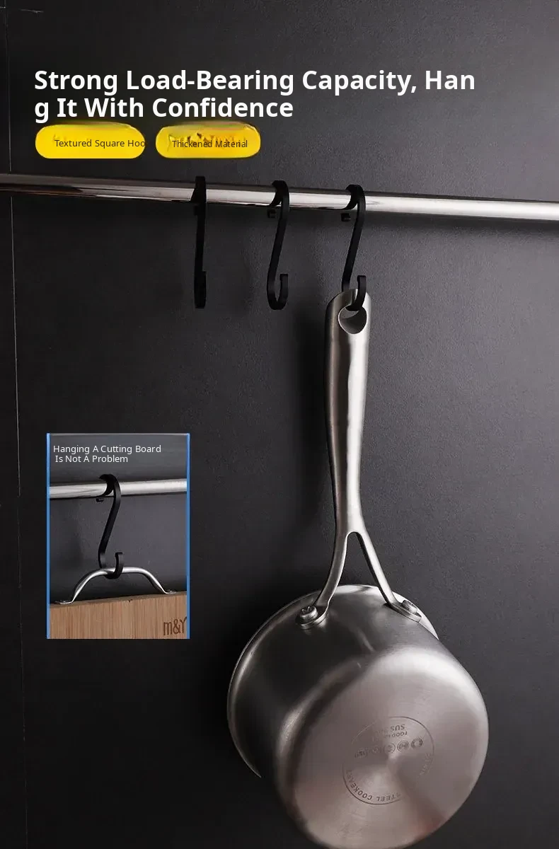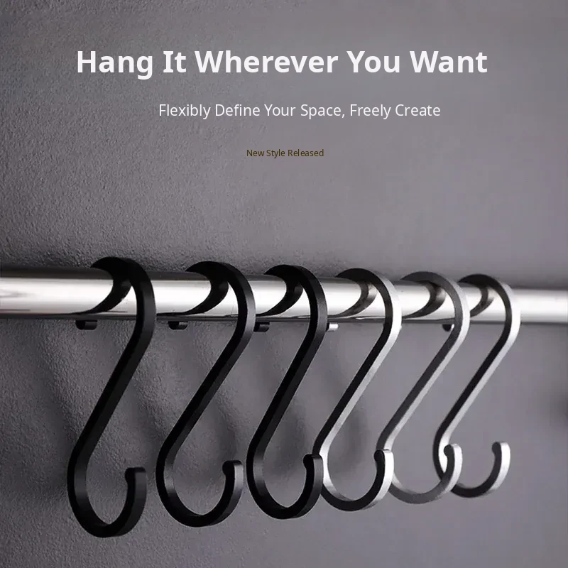Black S-Shaped Hooks - Durable Kitchen S Hooks for Anti-Drop Double-Headed Storage Rack - Small Metal S Hooks for Versatile Hanging Solutions