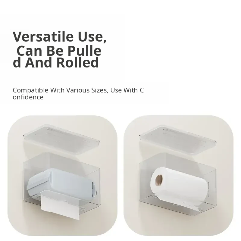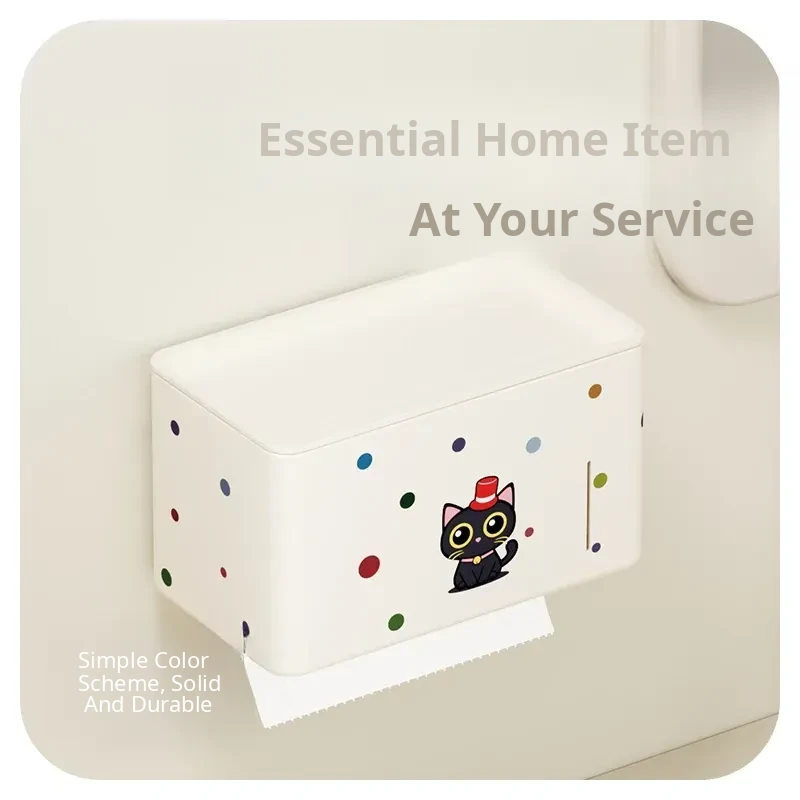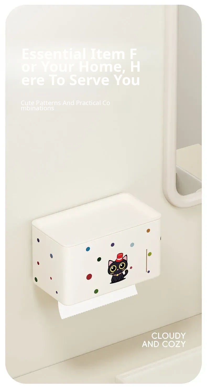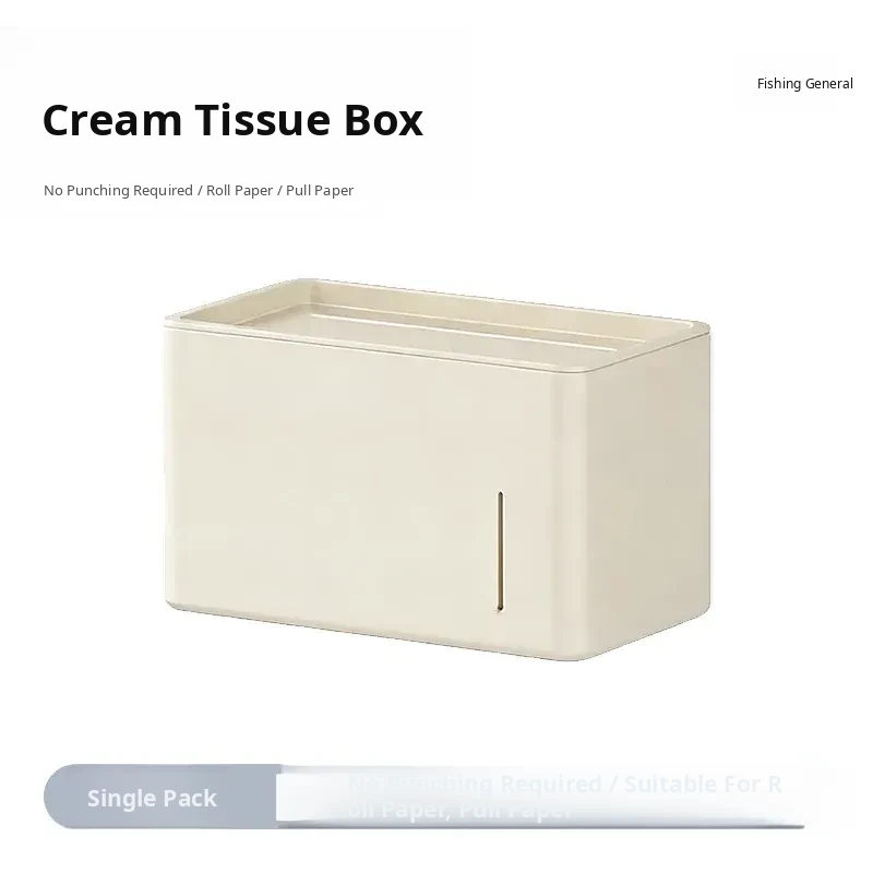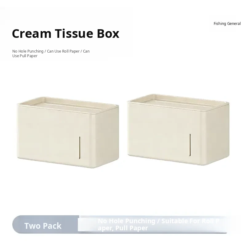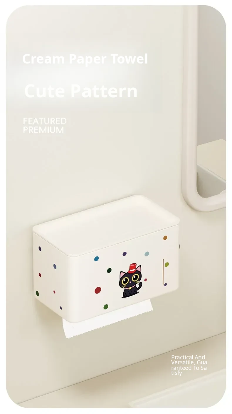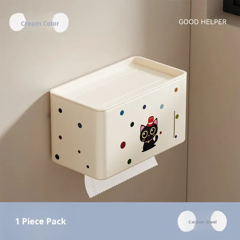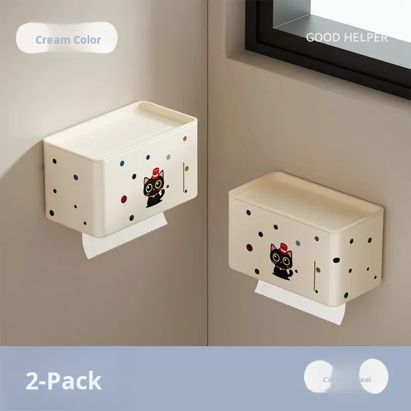 Creamy Multifunctional Waterproof Tissue Box - Wall-Mounted Storage Organizer for Bathroom, Toilet, and Kitchen Roll Paper Dispenser