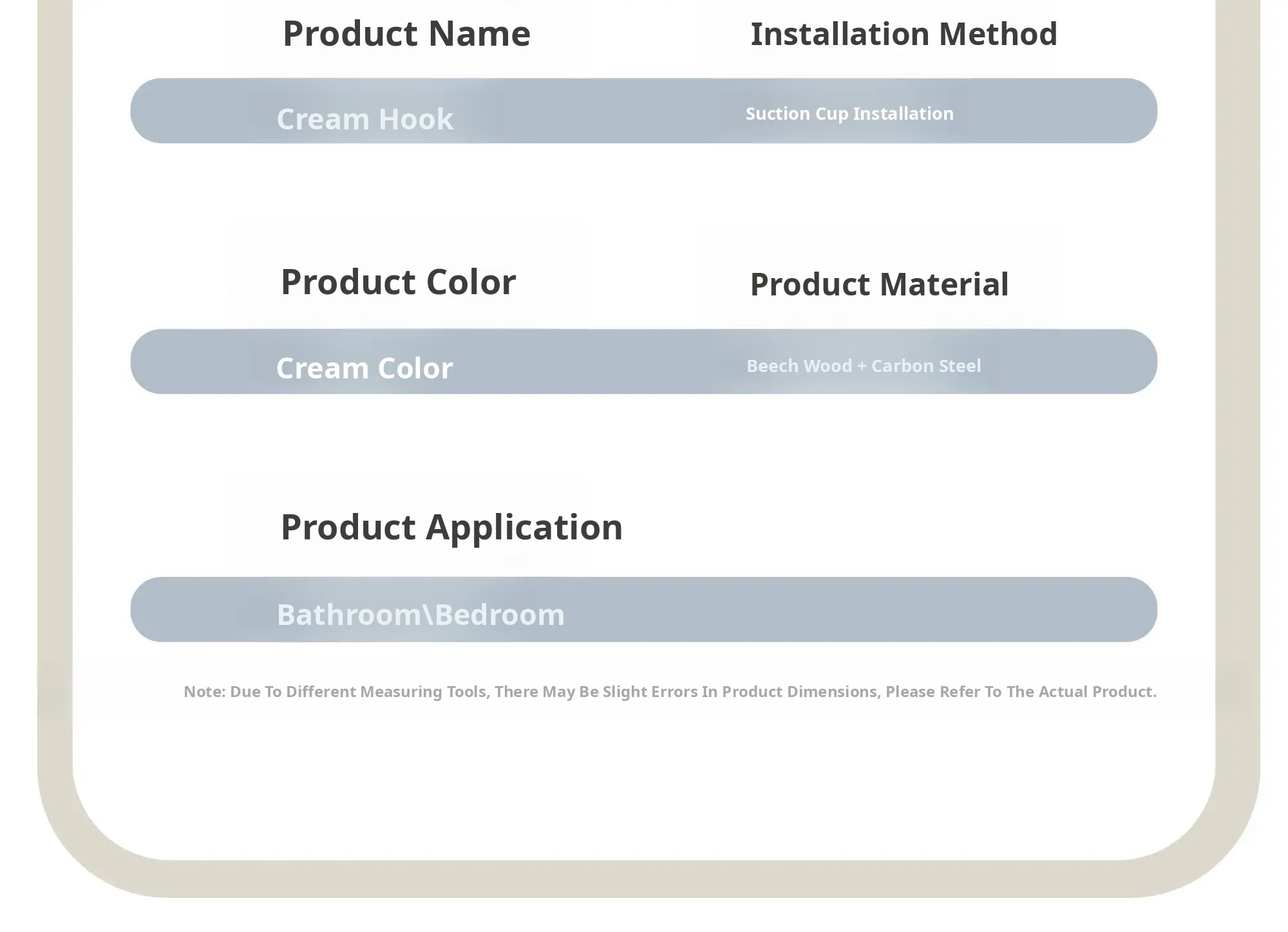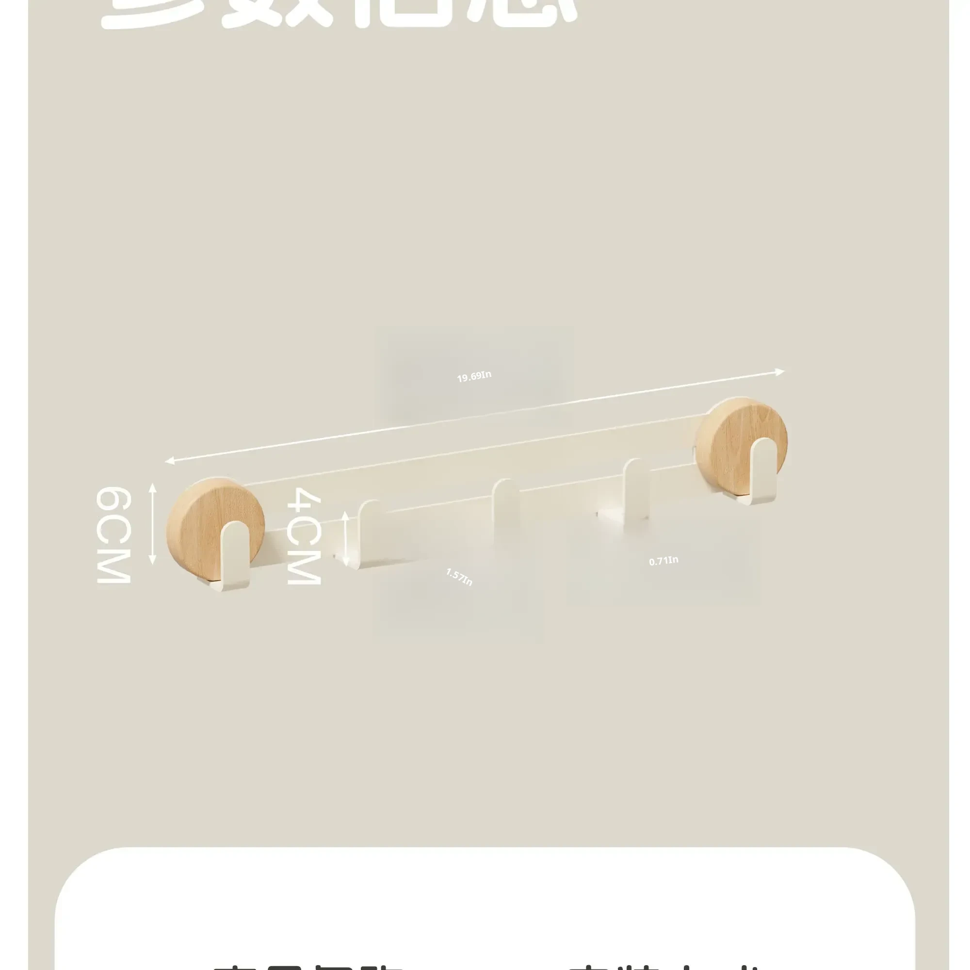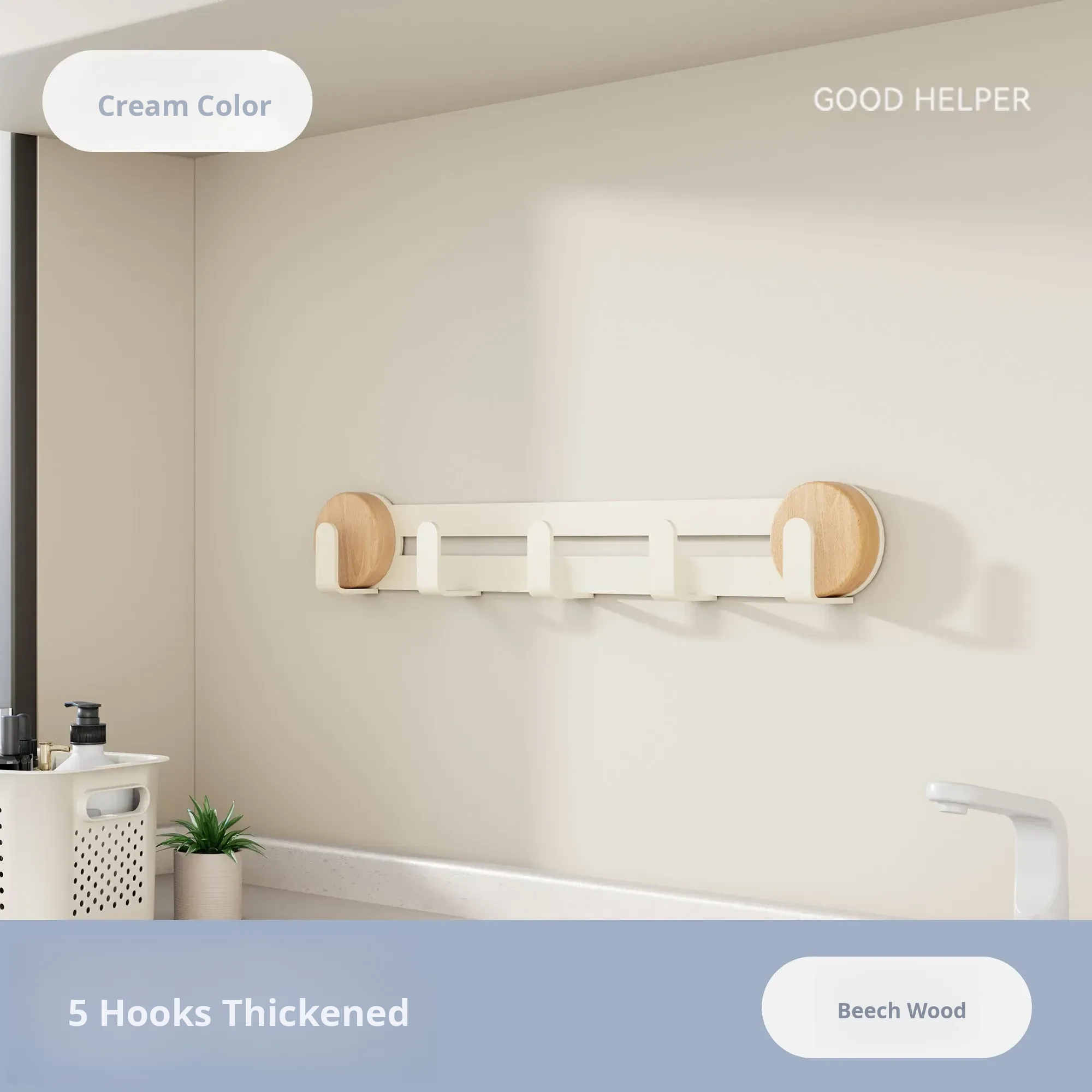 Cream-Beech [Suction Cup Row Hook 5 Hooks]