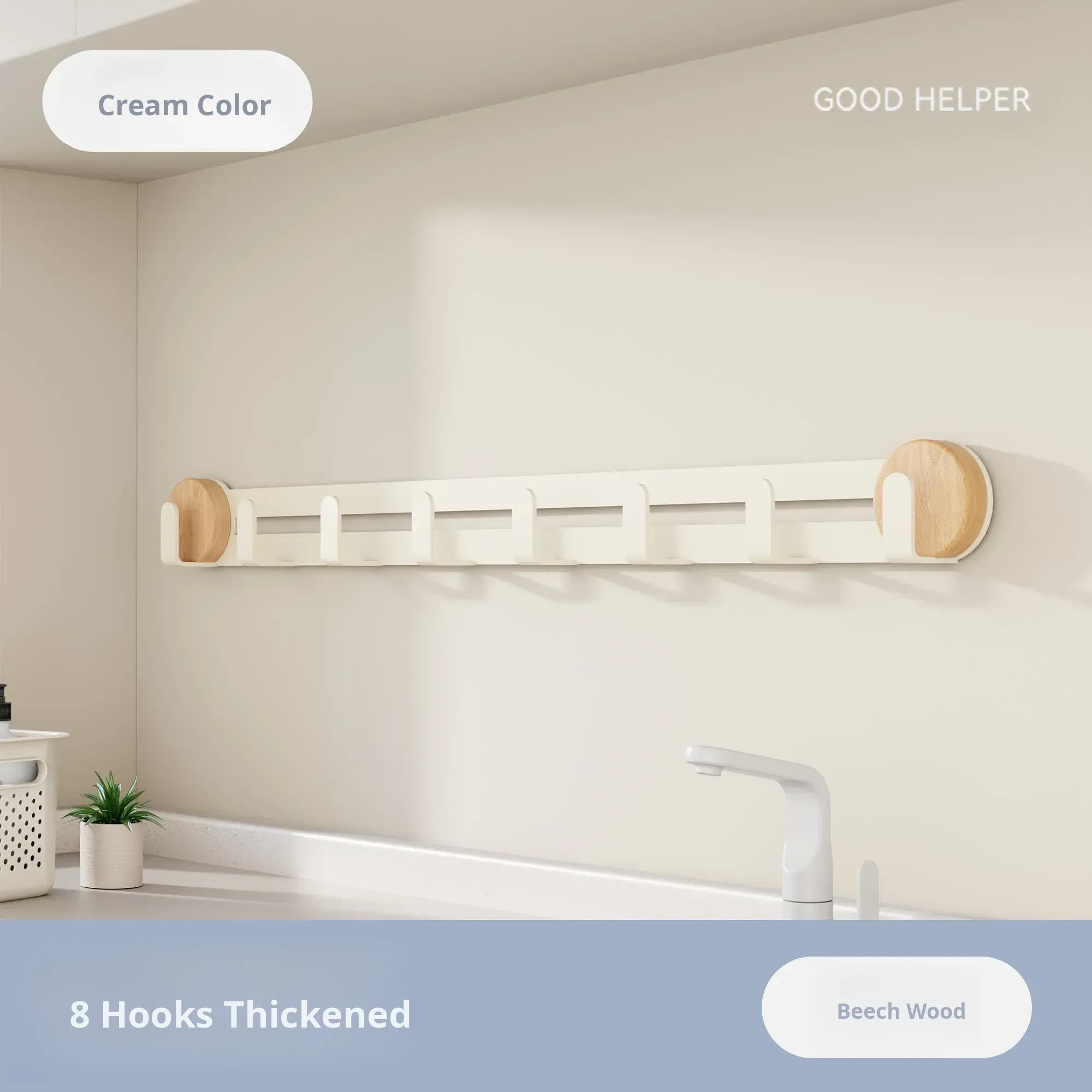 Cream-Beech [Suction Cup Row Hook 8 Hooks]