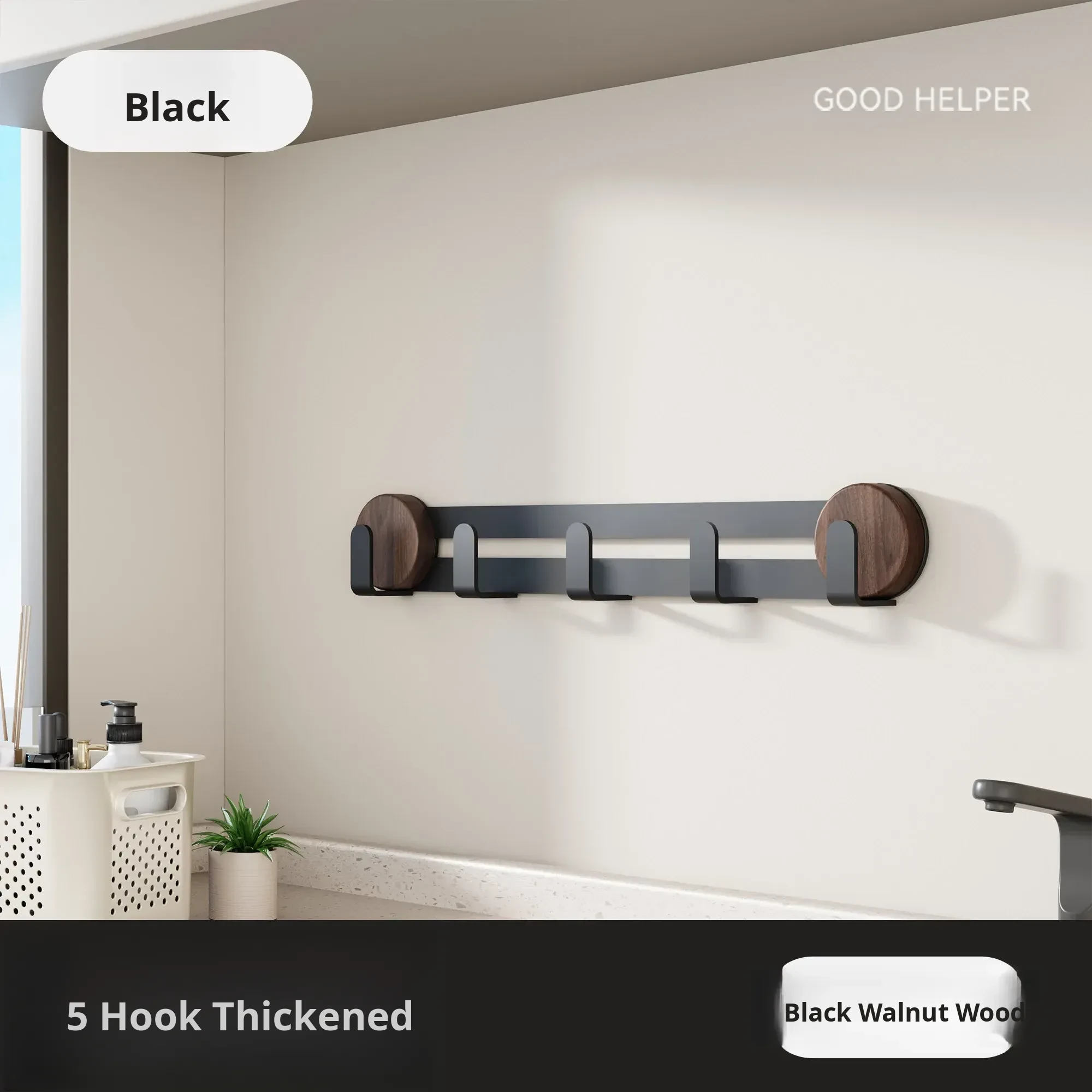 Black-Walnut [Suction Cup Row Hook 5 Hooks]