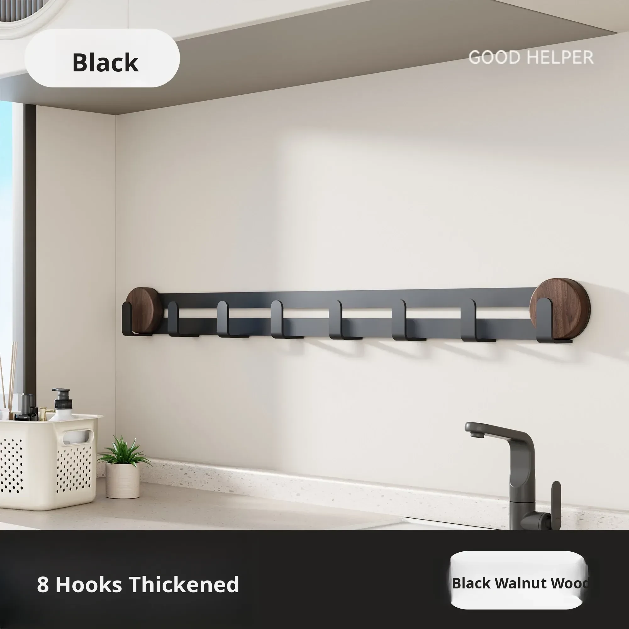 Black-Walnut [Suction Cup Row Hook 8 Hooks]