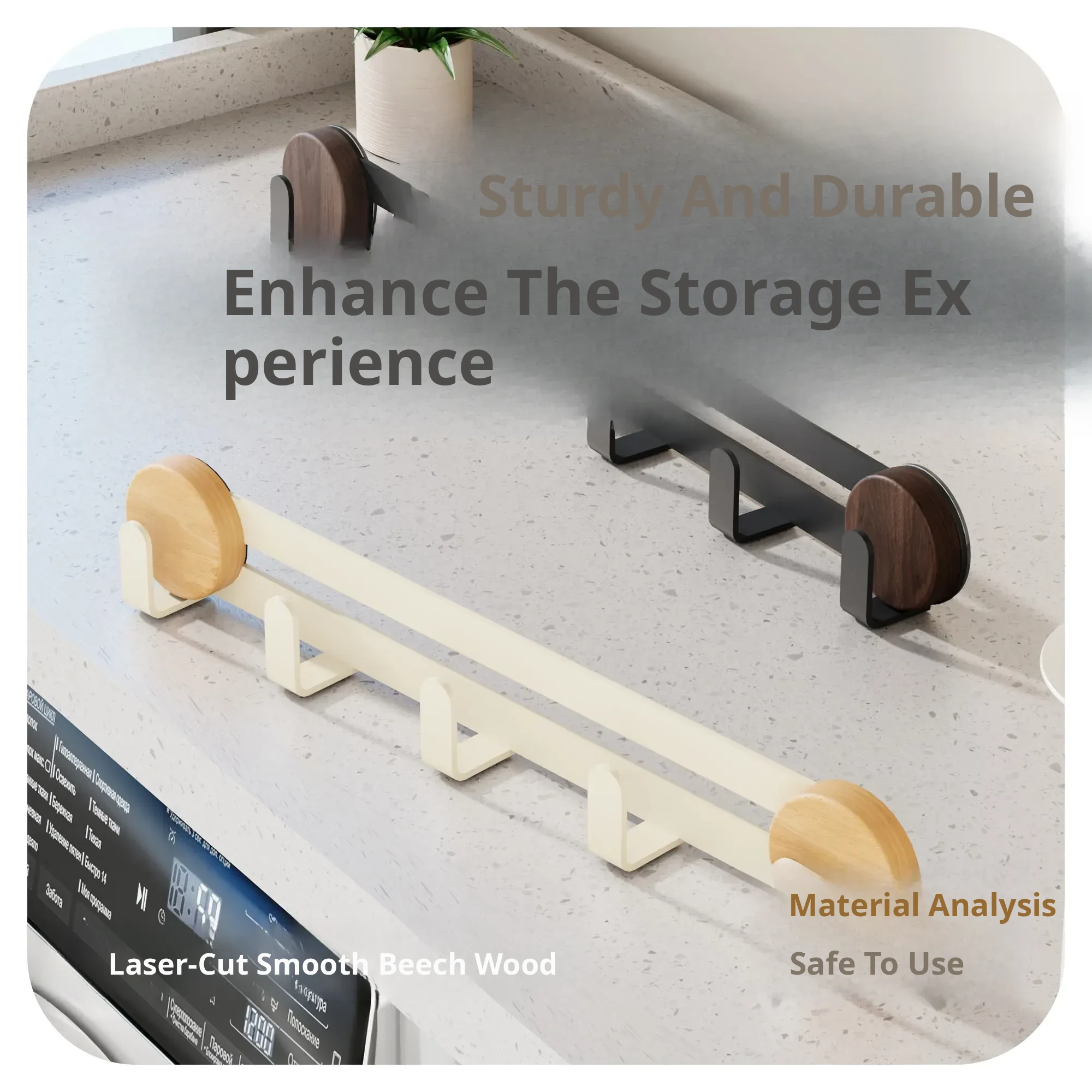 Black-Walnut [Suction Cup Row Hook 4 Hooks]