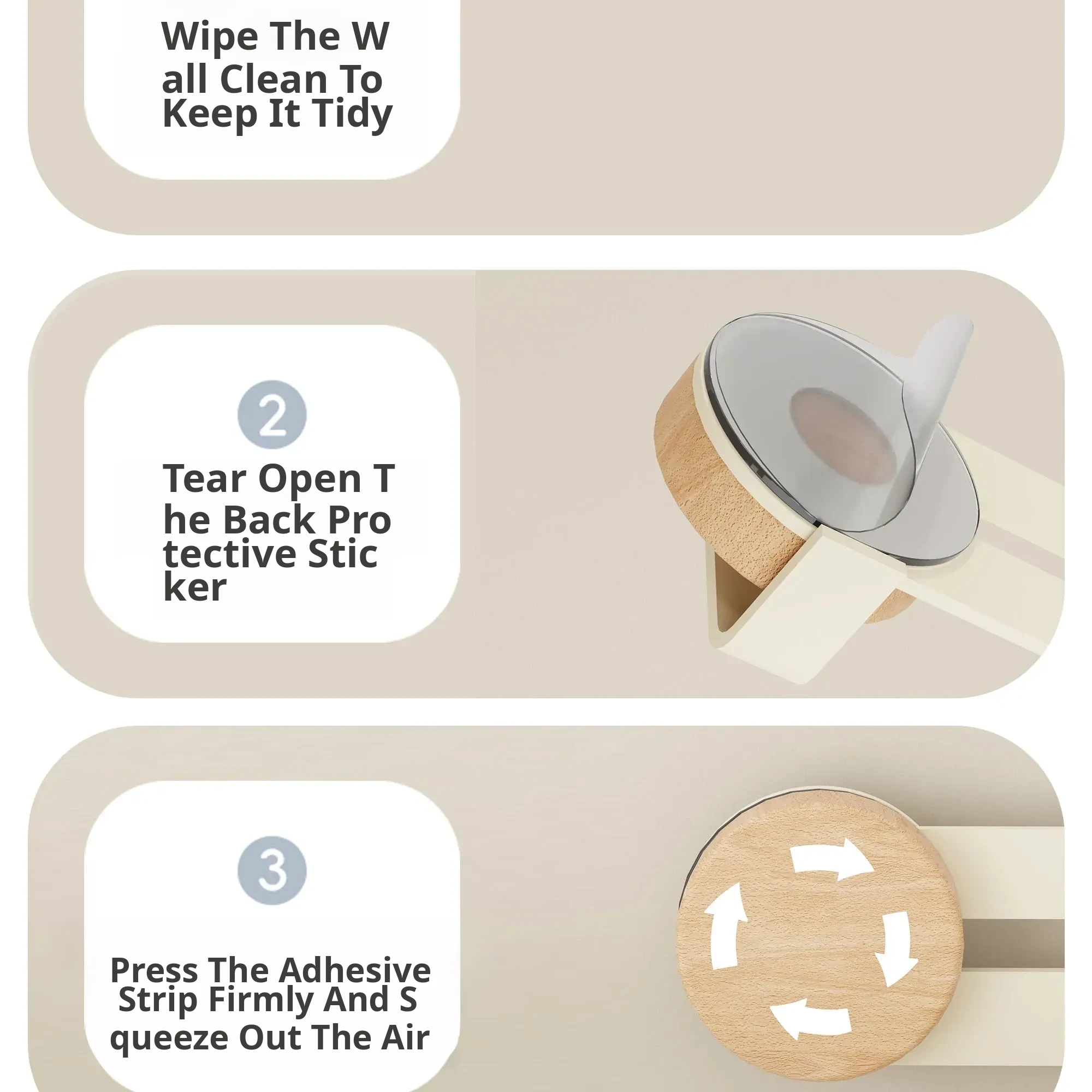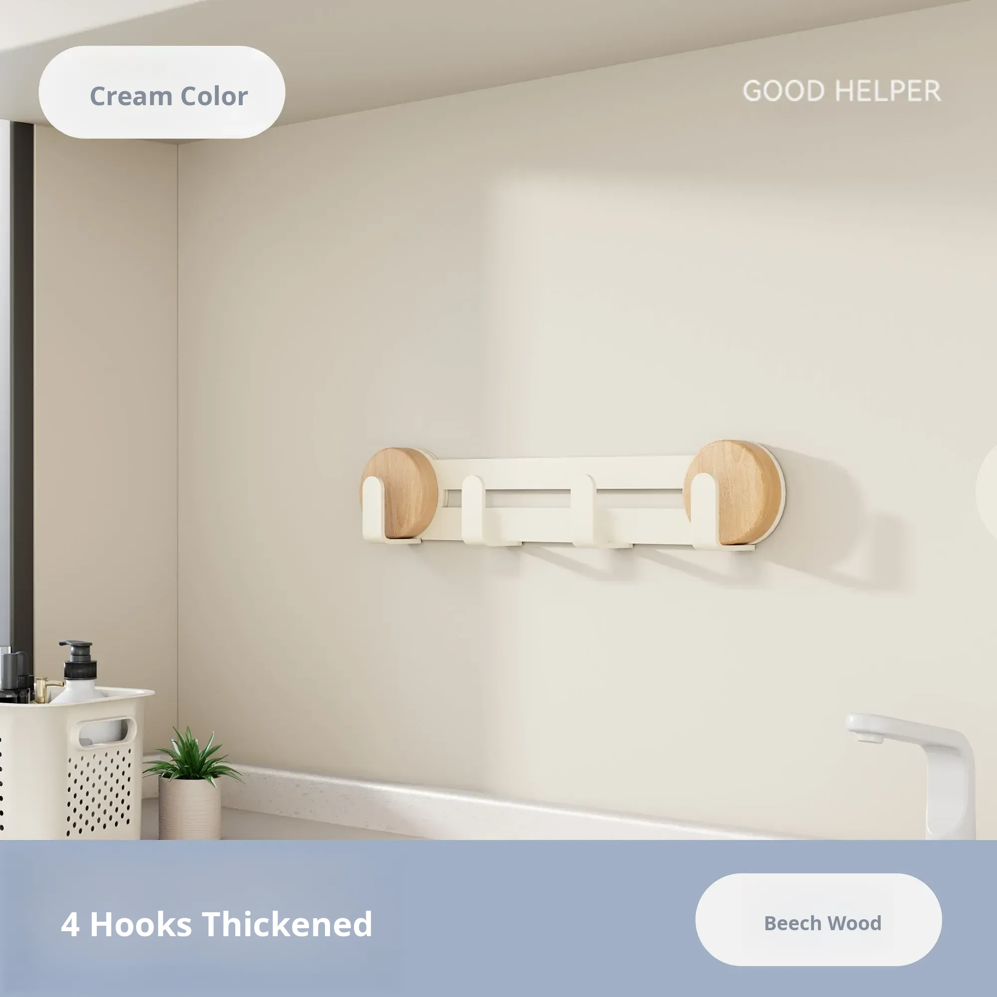 Cream-Beech [Suction Cup Row Hook 4 Hooks]