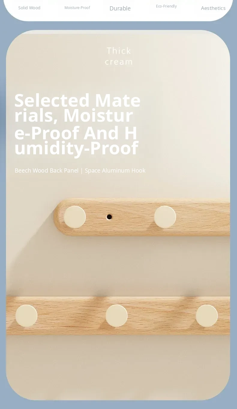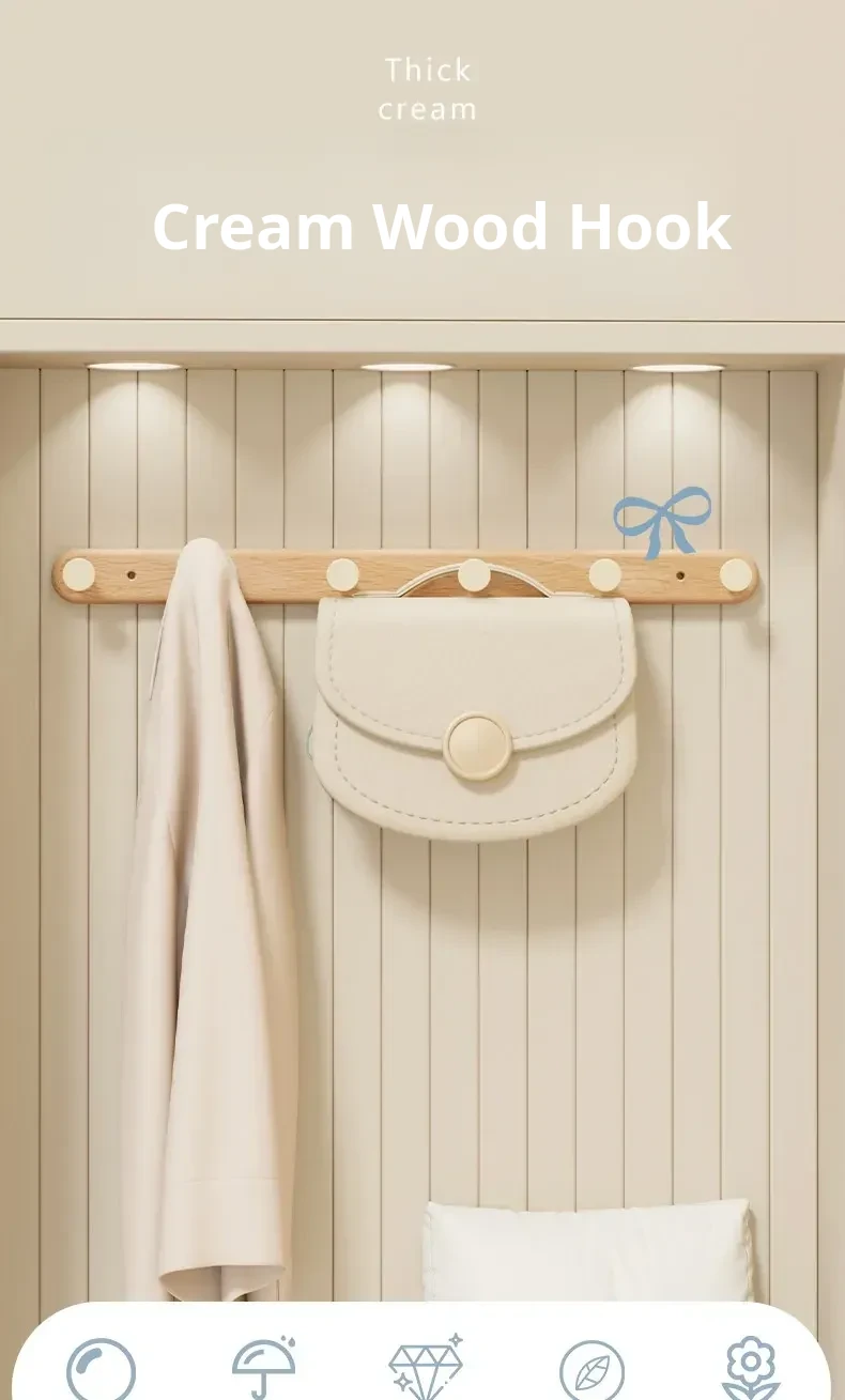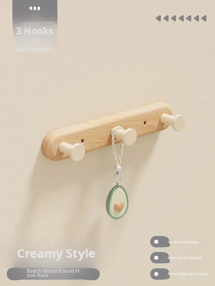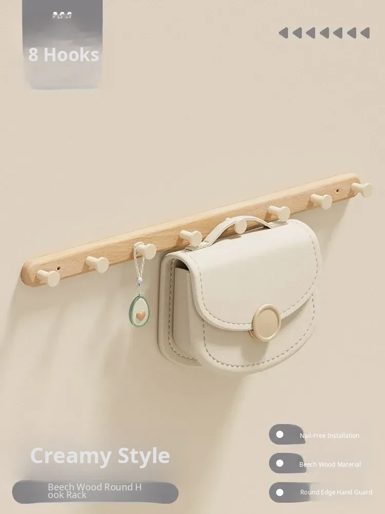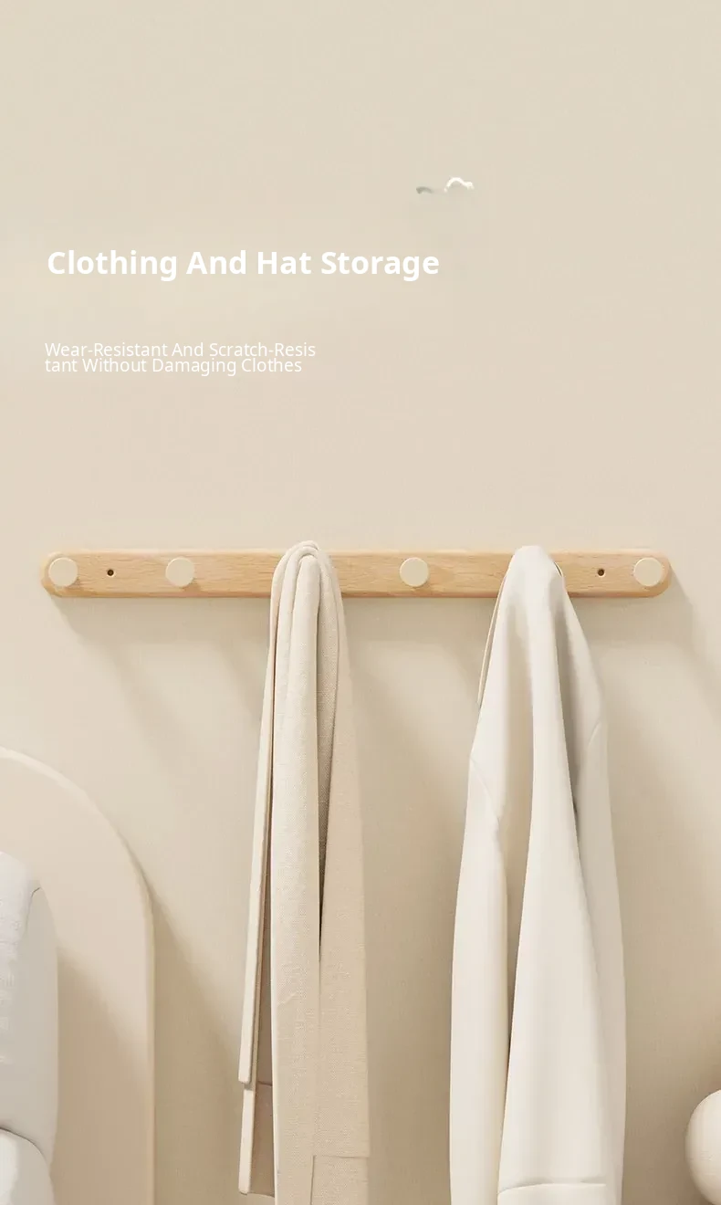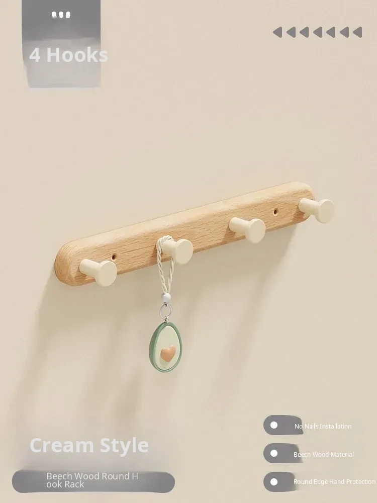 Creamy Wall-Mounted Coat Hooks - Stylish Wooden Hanger for Entryway, Closet, and Door Back - Perfect for Organizing Your Space with Elegance