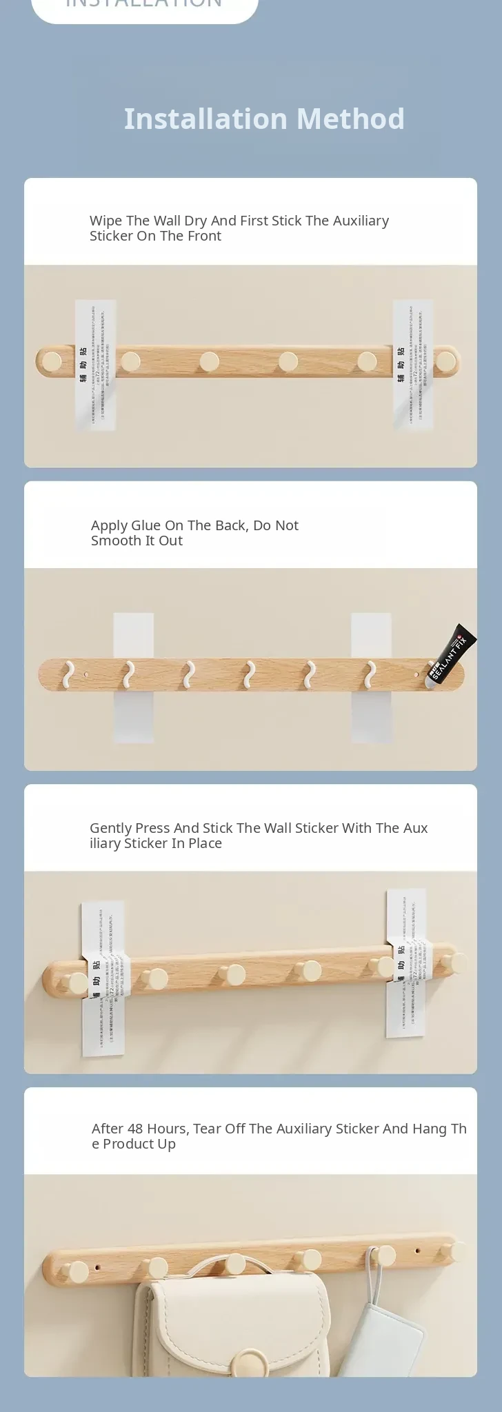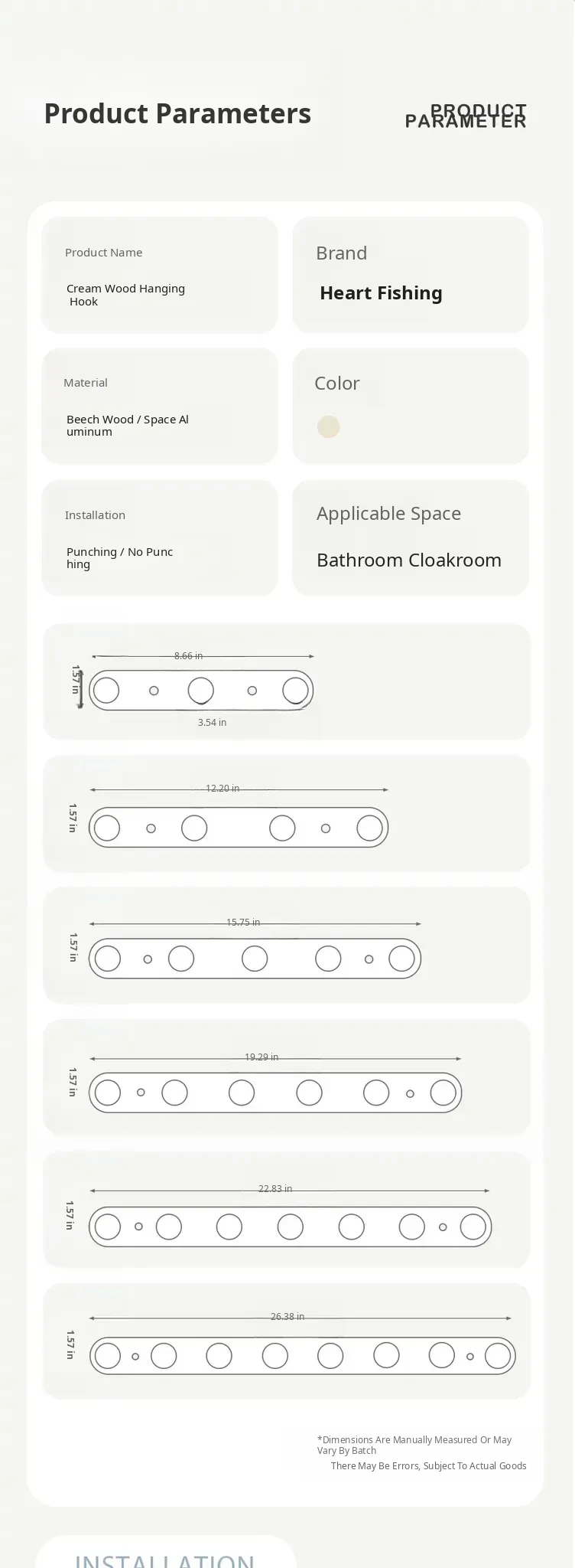 Cream Style + Beech Wood [Circle Hook Row Hook 4 Hooks]