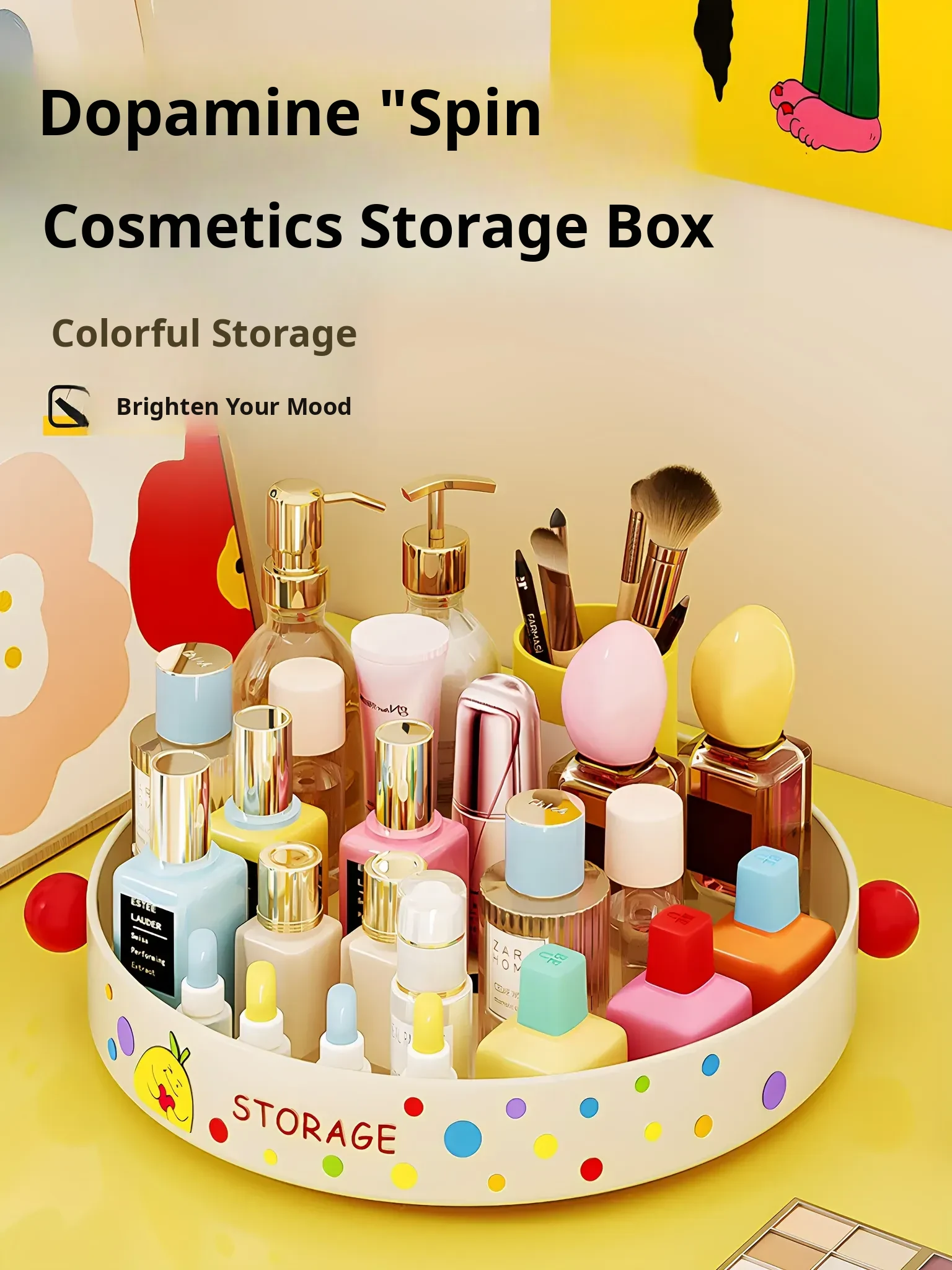 Dopamine-Inspired Makeup Organizer - Stylish Desktop Lipstick Holder & Skincare Station for Brushes and Beauty Essentials - Perfect for Your Vanity