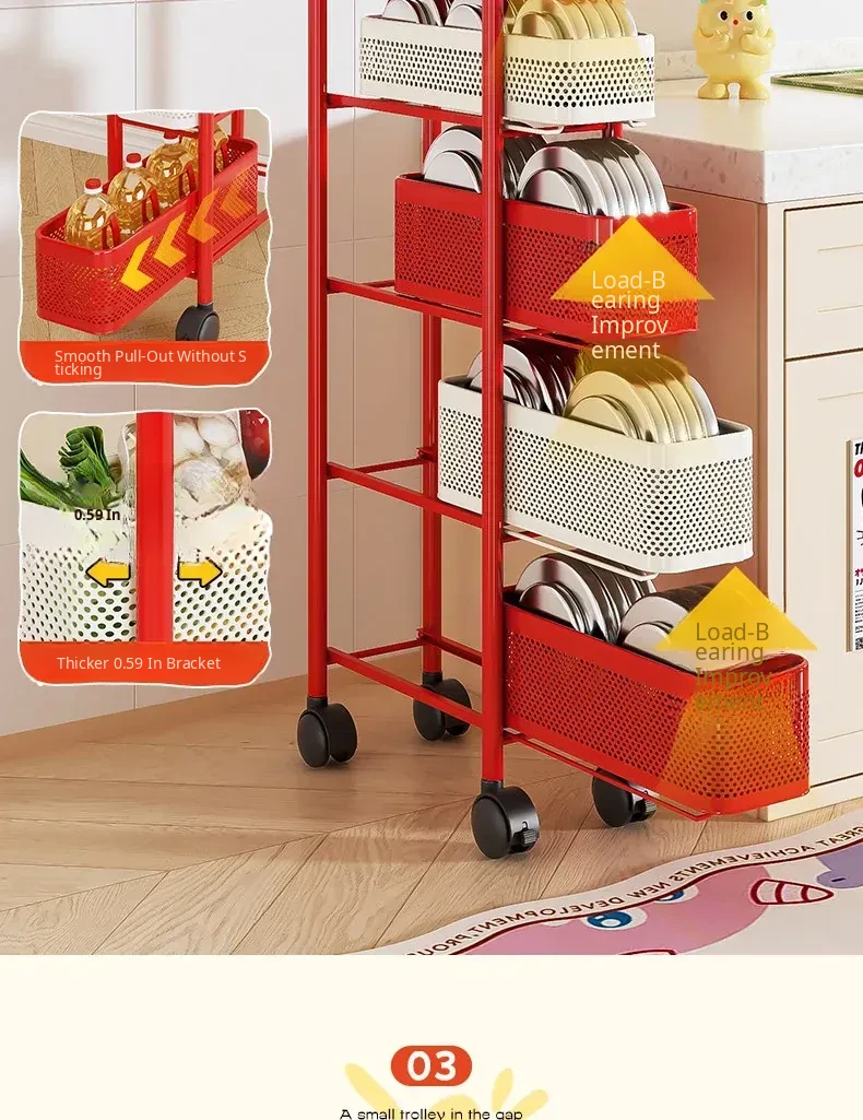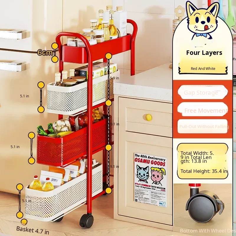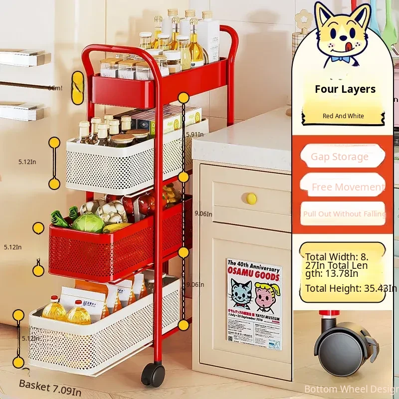 [Shipped by Sf Express] 4-Layer 7.09in Sandwich Storage Rack Trolley