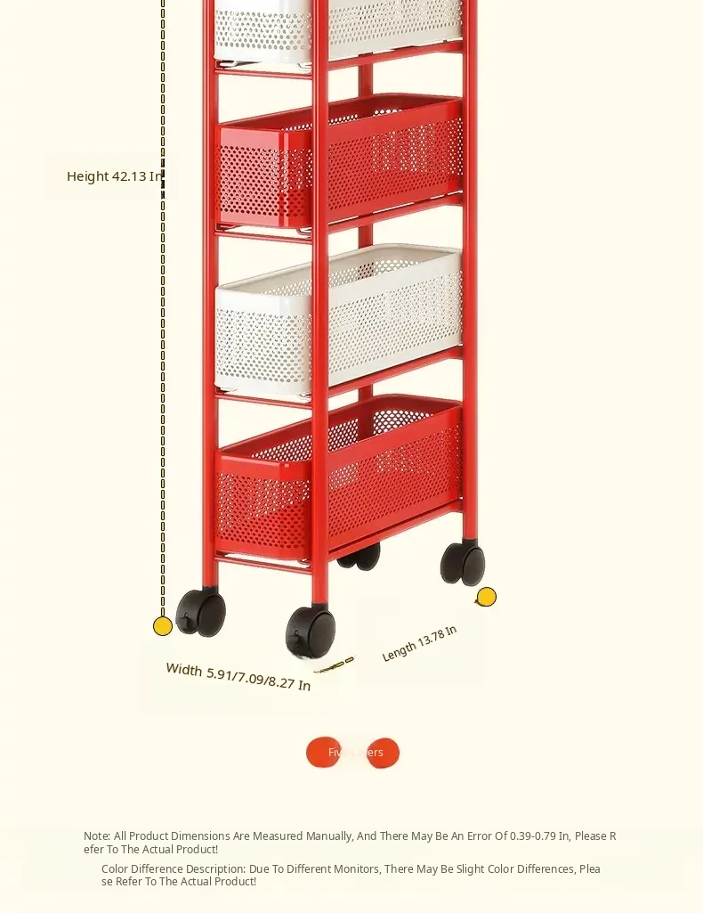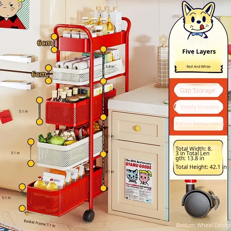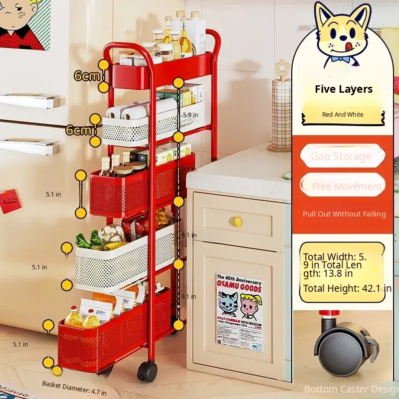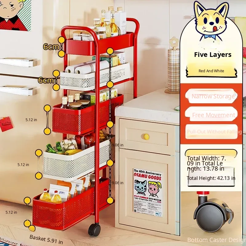 [Send by Sf Express] 5-Layer 5.91in Sandwich Storage Rack Trolley