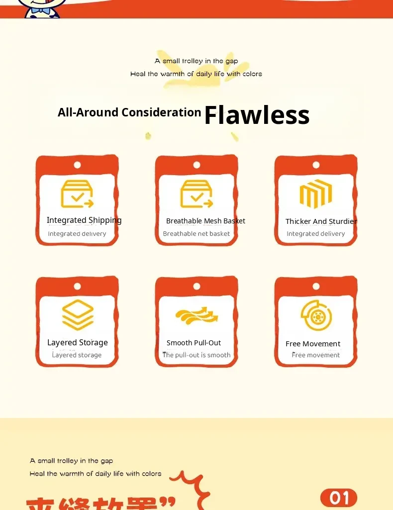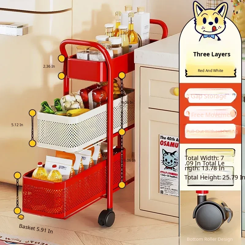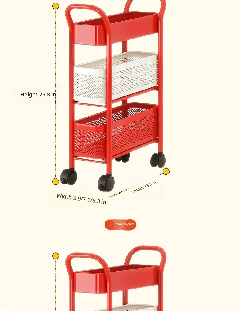 [Send by Sf Express] 3-Layer 5.91in Sandwich Storage Rack Trolley
