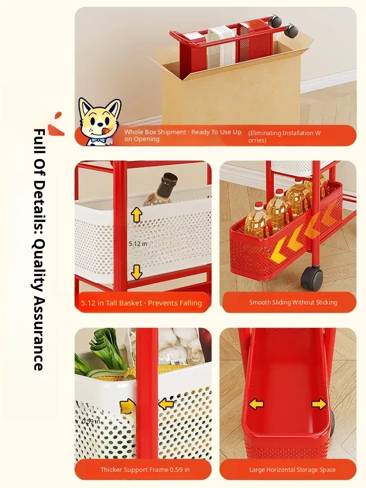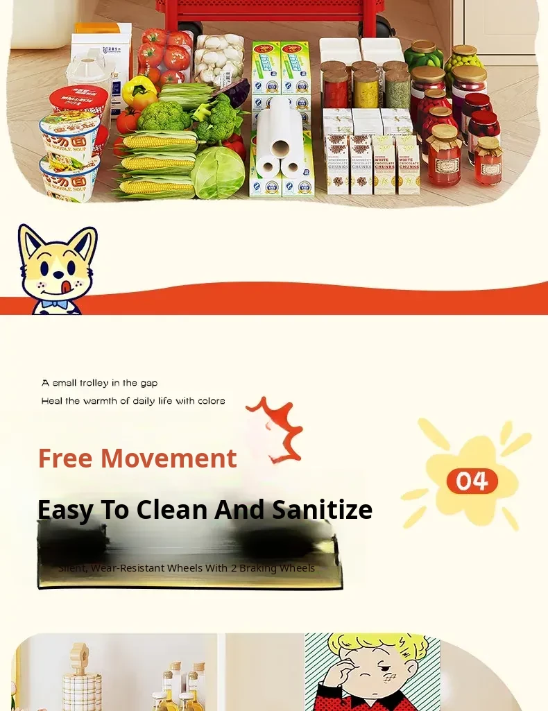 [Shipped by Sf Express] 4-Layer 5.91in Sandwich Storage Rack Trolley