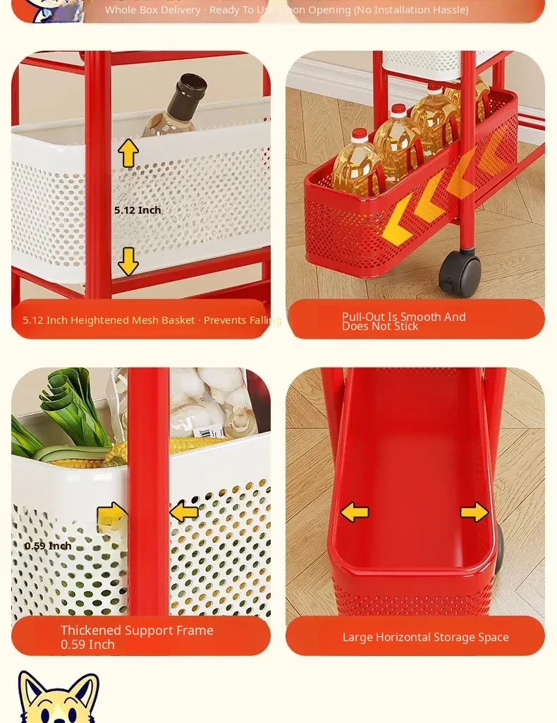 [Send by Sf Express] 4-Layer 8.27in Sandwich Storage Rack Trolley