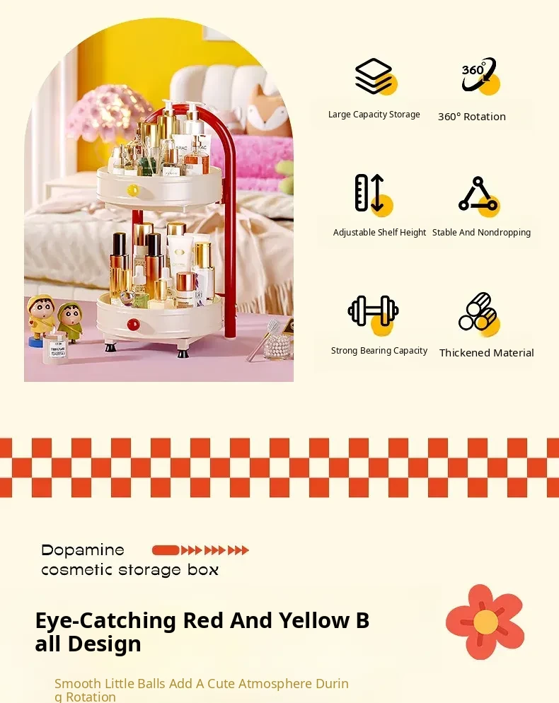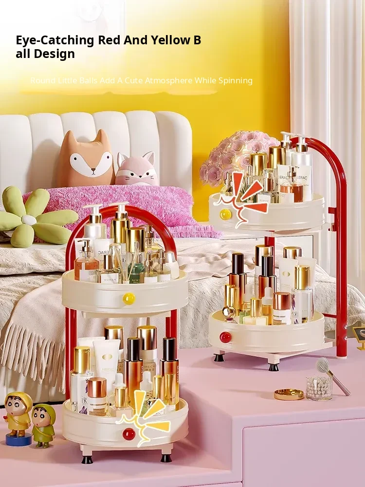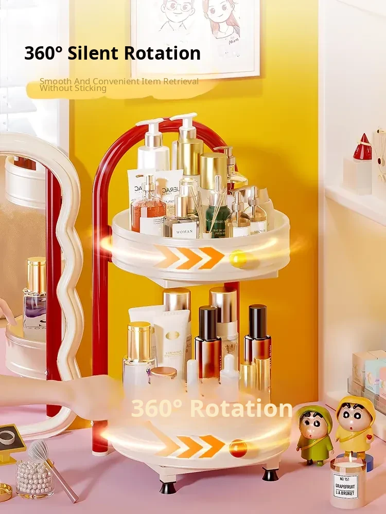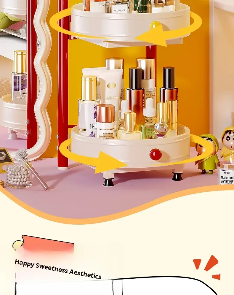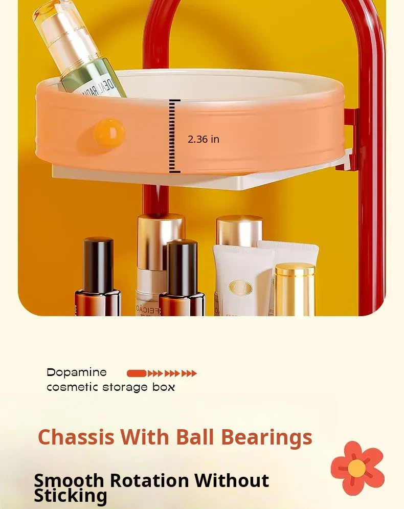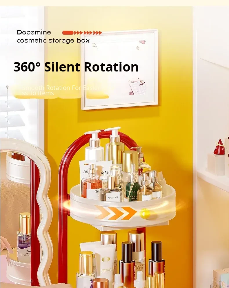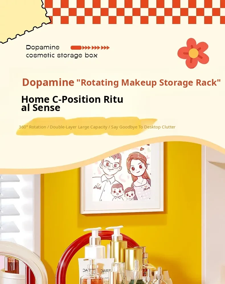 Flins Dopamine Rotating Makeup Organizer - Large Capacity Desktop Vanity Storage for Lipsticks and Skincare Products, Perfect for Effortless Beauty Organization!