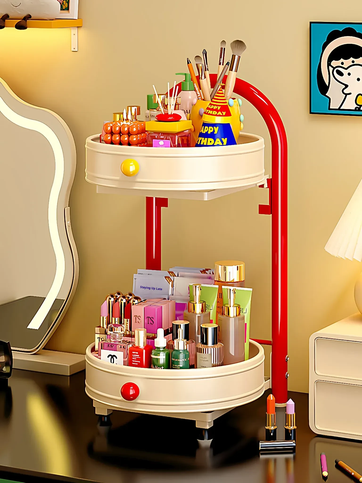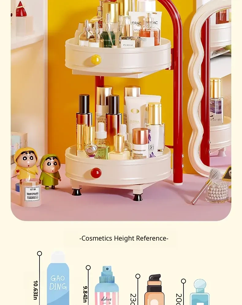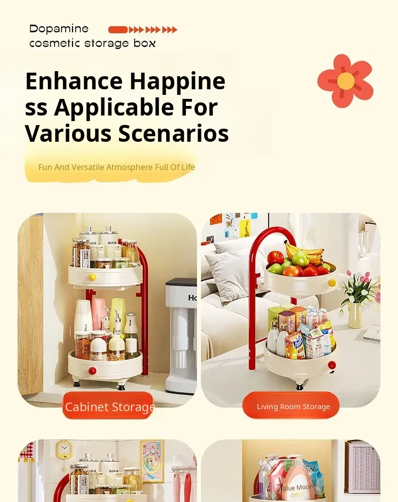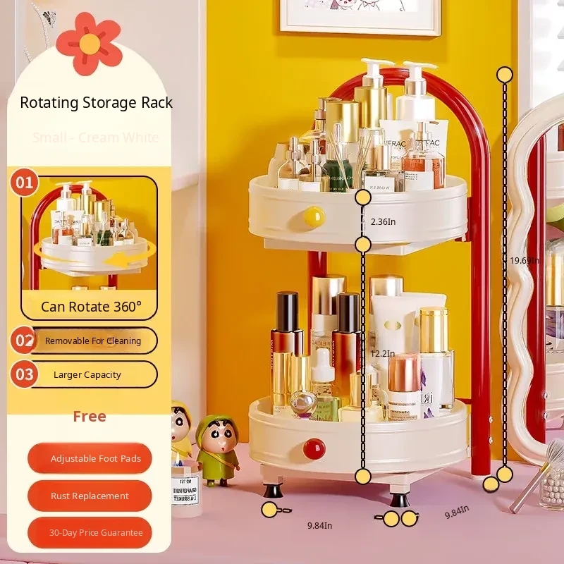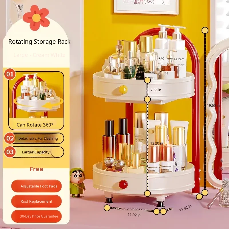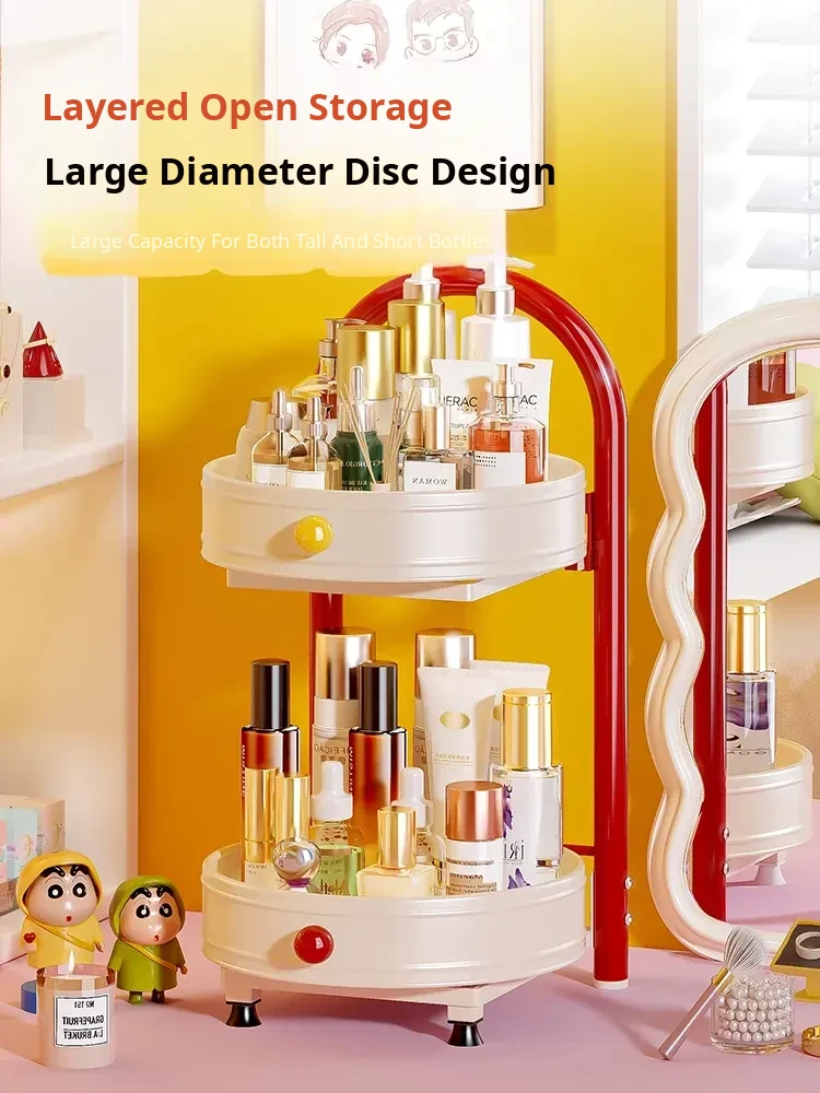 Flins Dopamine Rotating Makeup Organizer - Large Capacity Desktop Vanity Storage for Lipsticks and Skincare Products, Perfect for Effortless Beauty Organization!