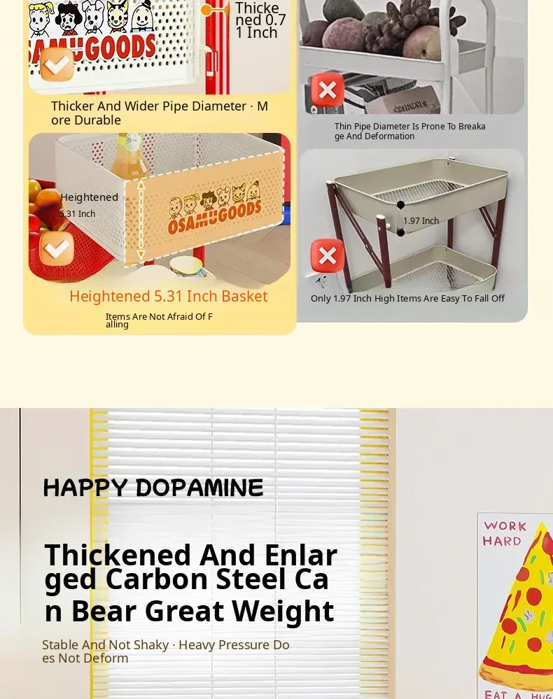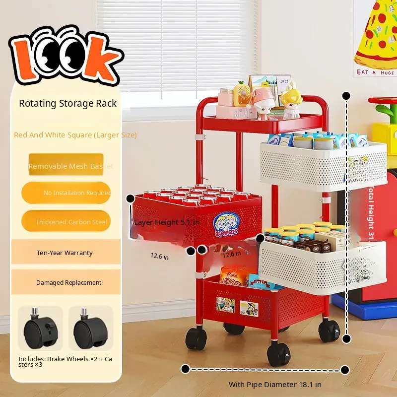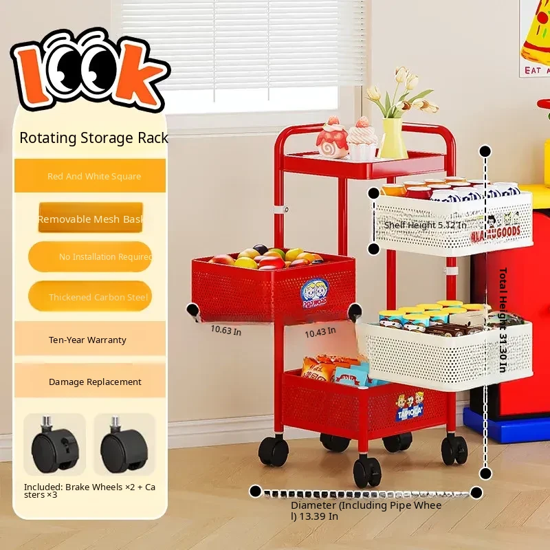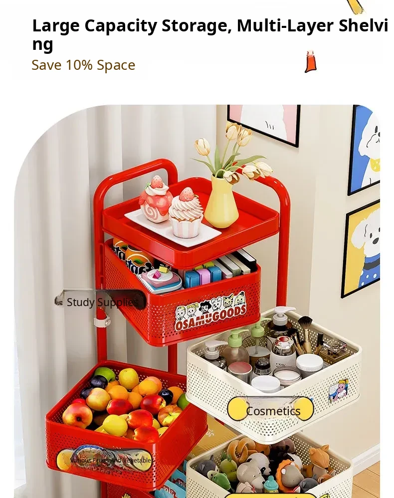 Flins Multi-Layer Rolling Cart - Versatile Home Storage Solution for Living Room, Bathroom, and Kitchen - Stylish and Functional Organizer with Easy Mobility