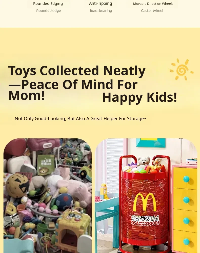 Flins Plush Toy Storage Bin - Large Capacity Stuffed Animal Organizer, Cute Cart for Laundry and Toy Storage, Perfect for Keeping Your Space Tidy and Fun!