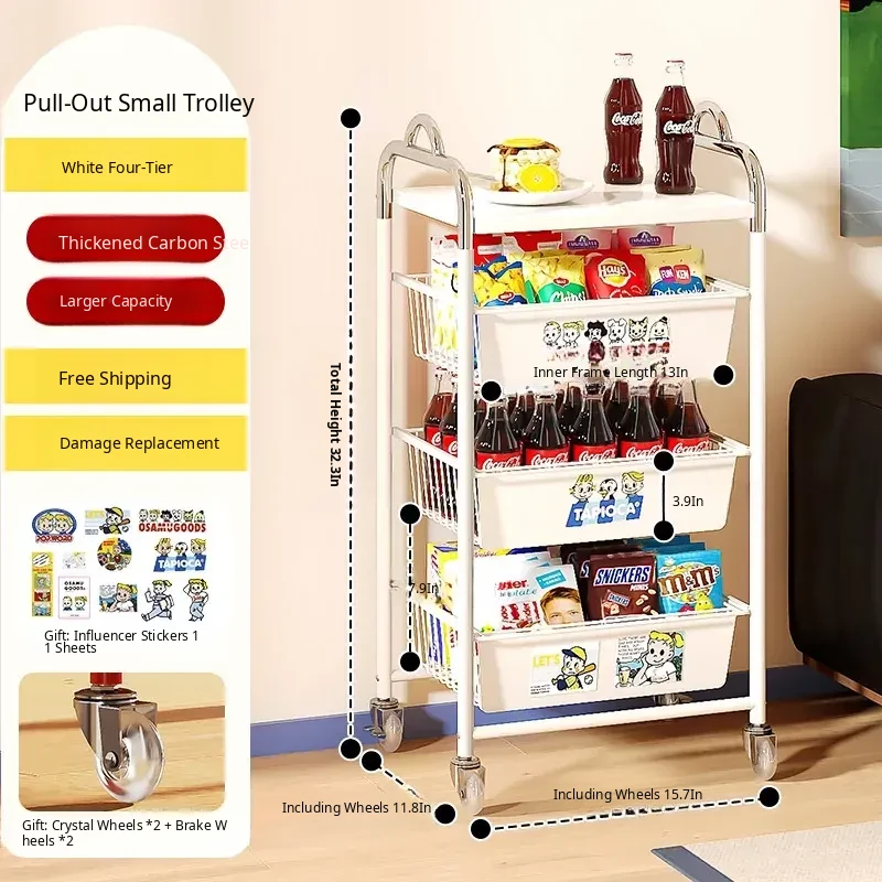 Flin's Stylish Multi-Functional Snack Cart - Elegant 3-Tier Mobile Storage Rack for Living Room or Kitchen, Perfect for Fruits and Snacks Organization