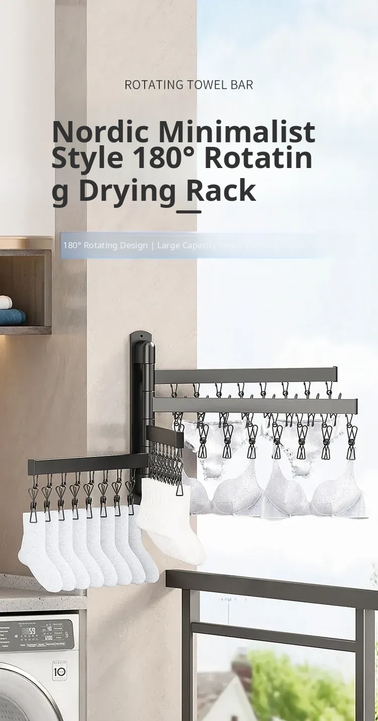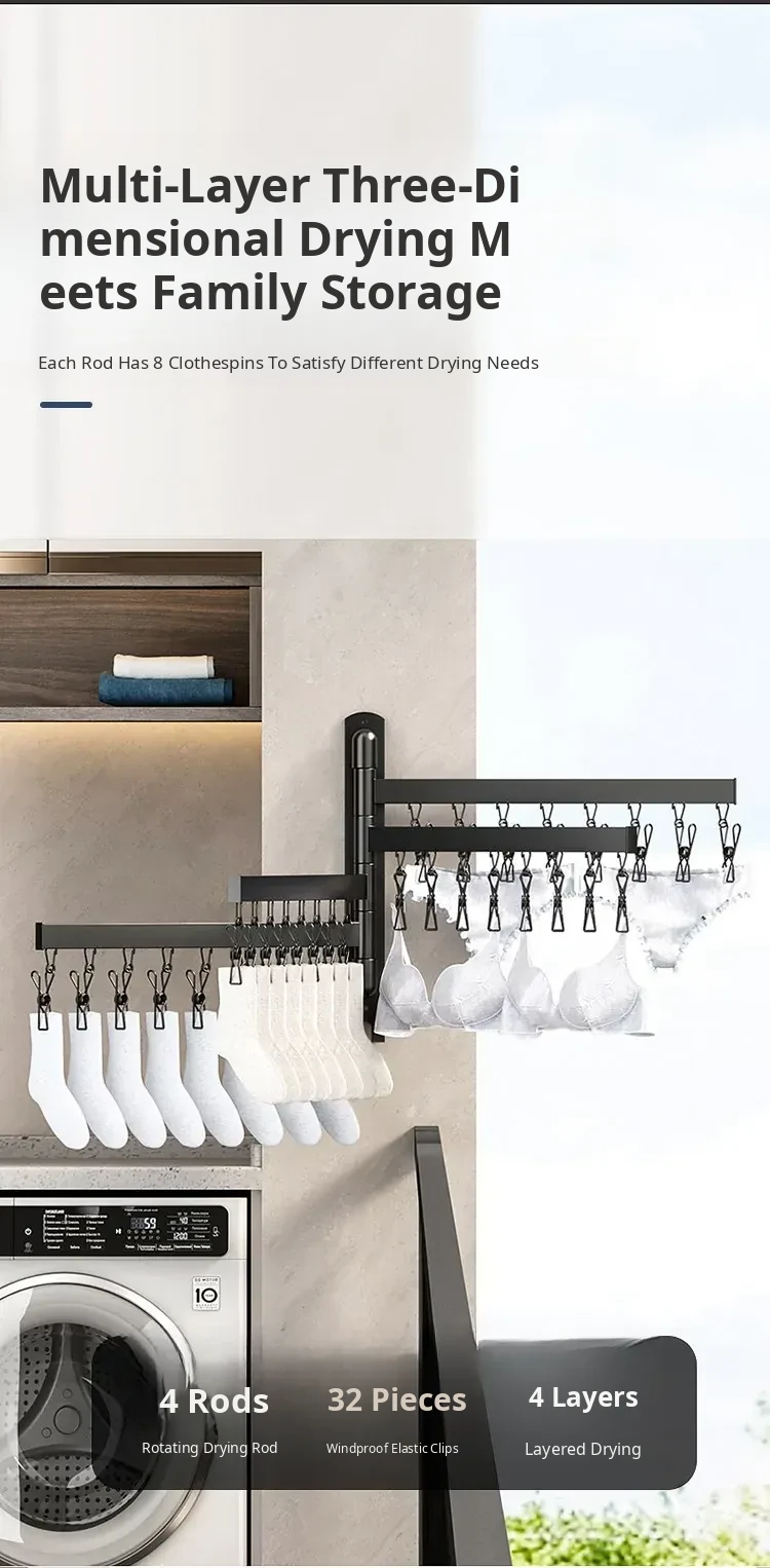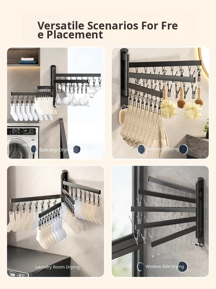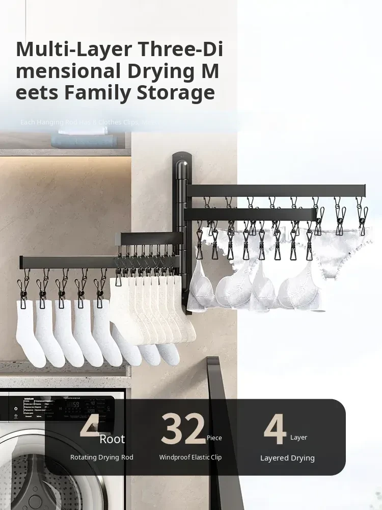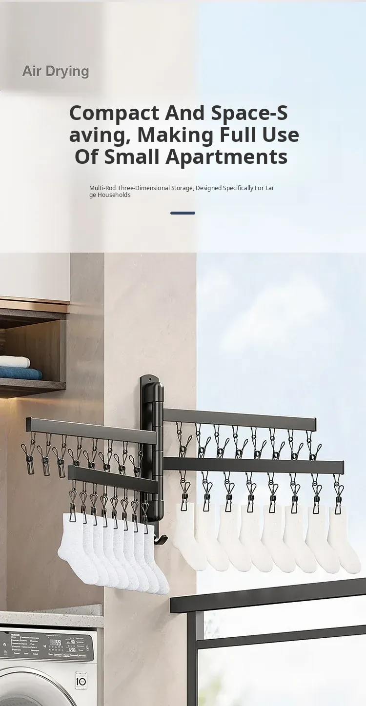 Foldable Clothes Drying Rack – The Ultimate Home Solution for Drying Socks, Underwear, and More! Wall-Mounted Design for Balconies, Smart and Space-Saving, Perfect for Any Laundry Room.