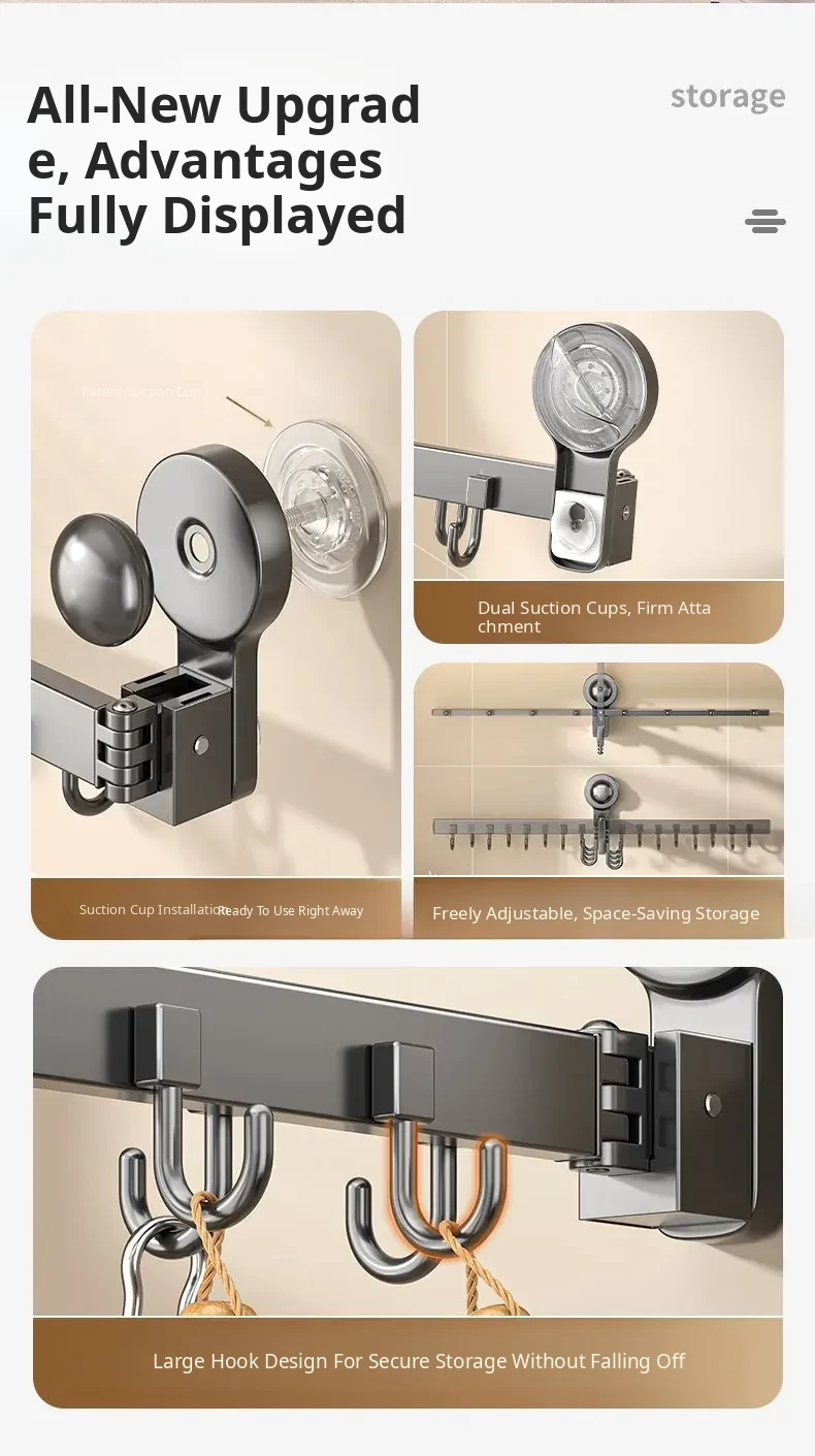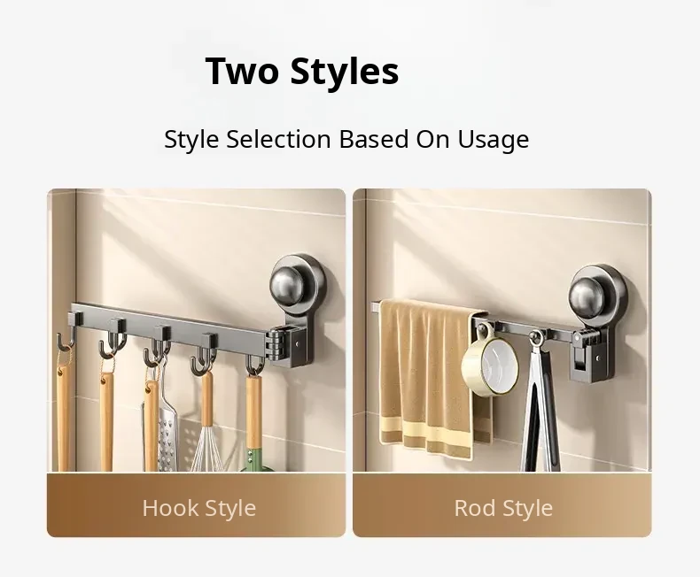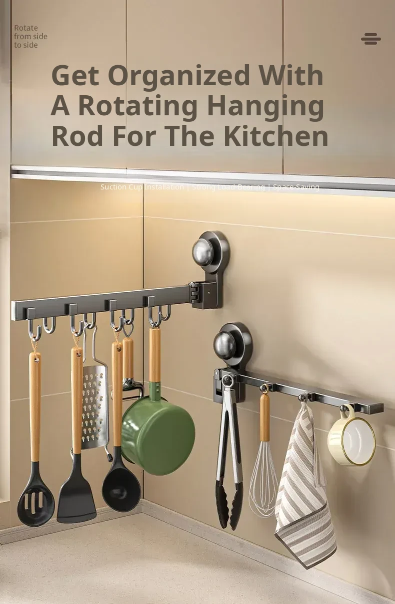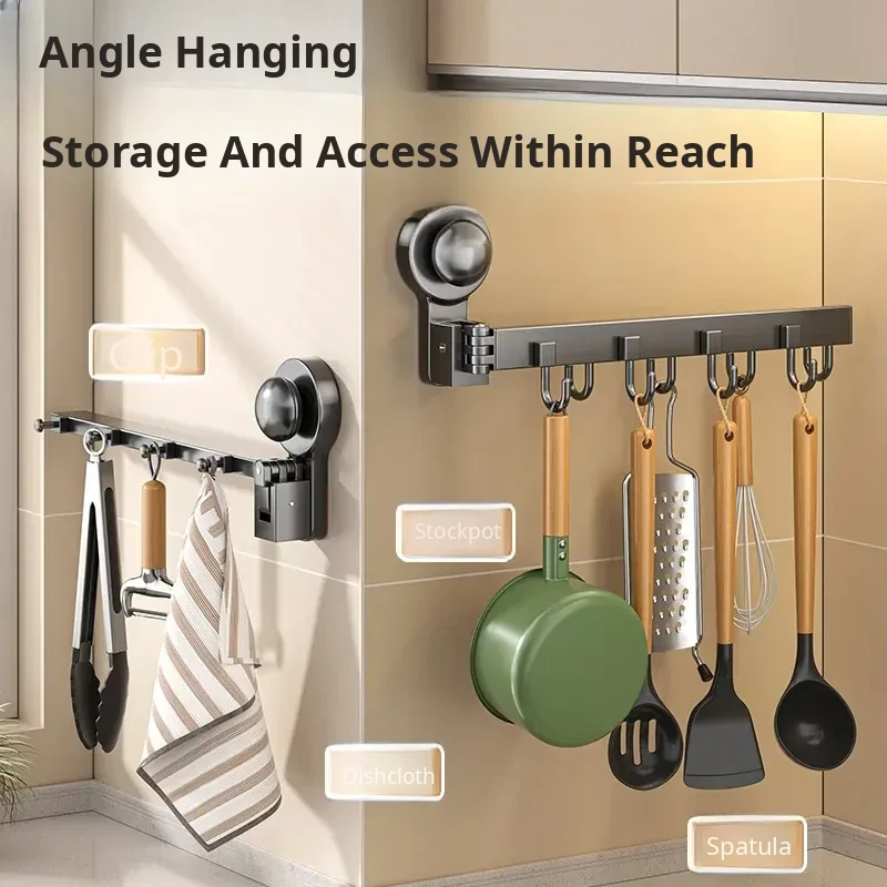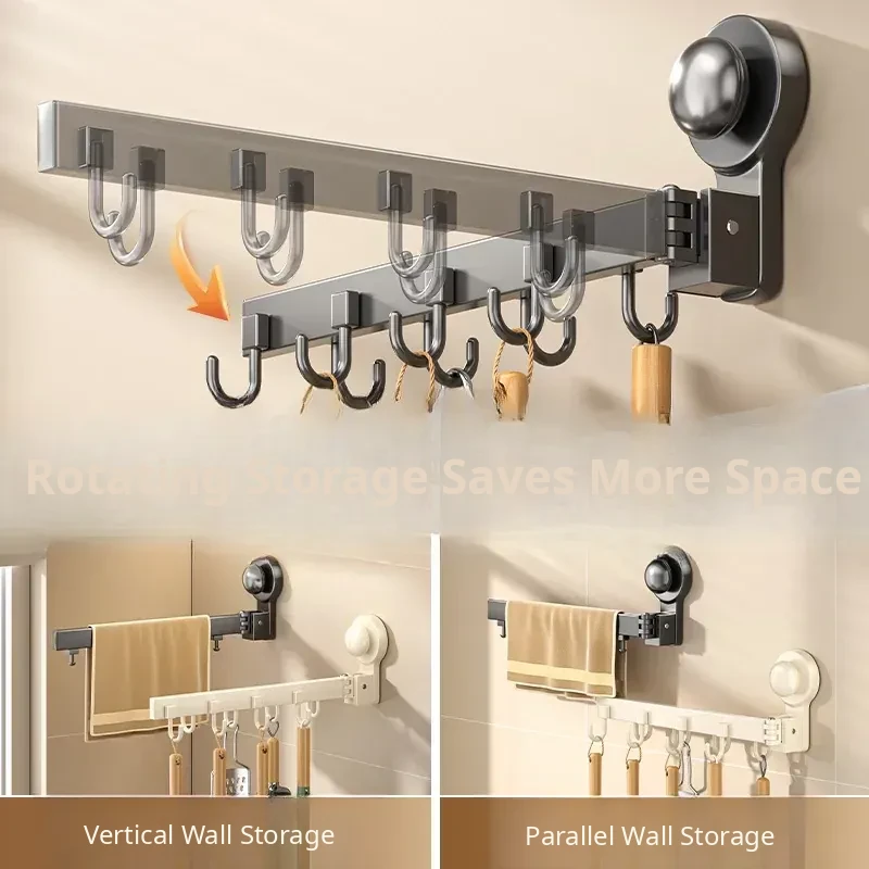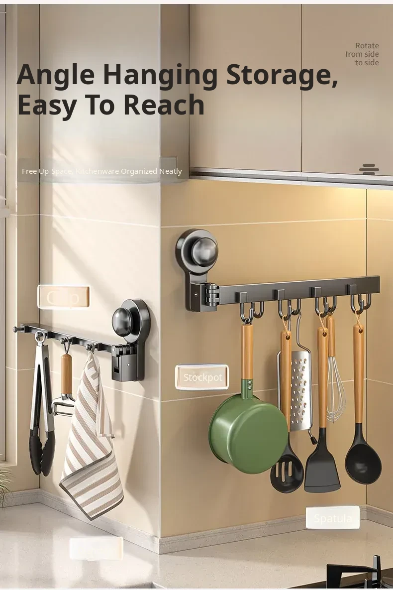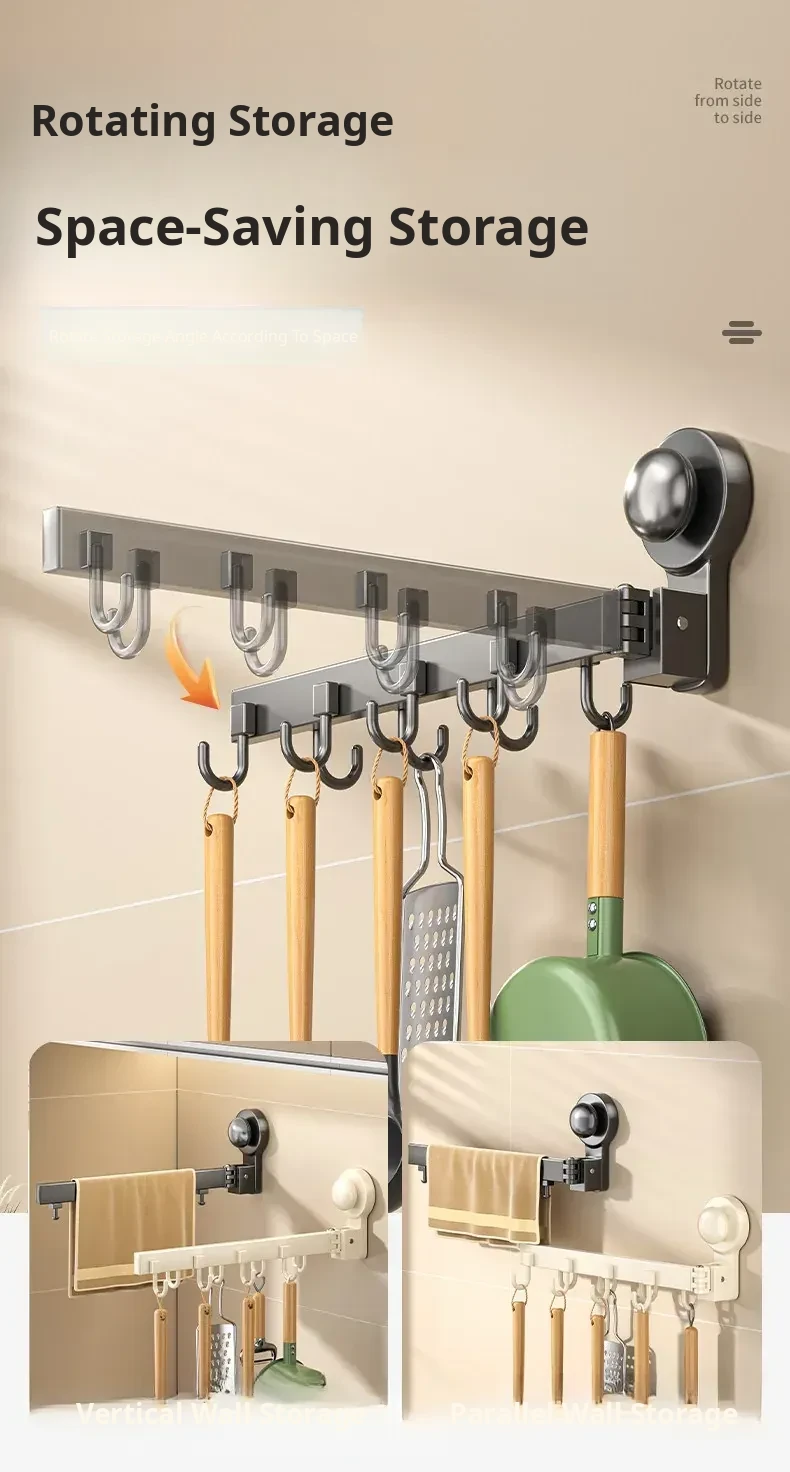 Multifunctional Suction Cup Rotating Kitchen Hooks - Space-Saving Hanging Rack for Towels, Spatulas, and Utensils - Organize Your Kitchen Effortlessly!