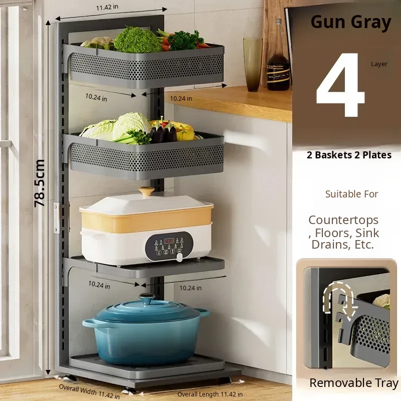 Adjustable Storage Basket [Gunmetal Gray Four-Tier] 2 Baskets 2 Shelves