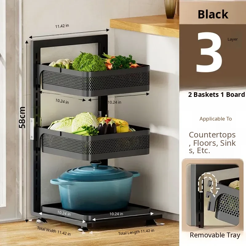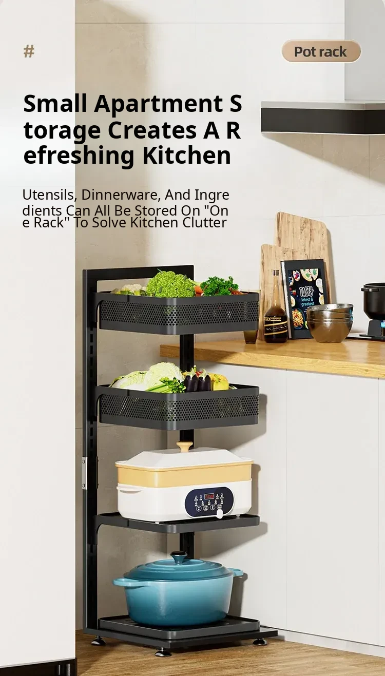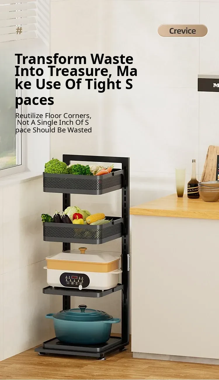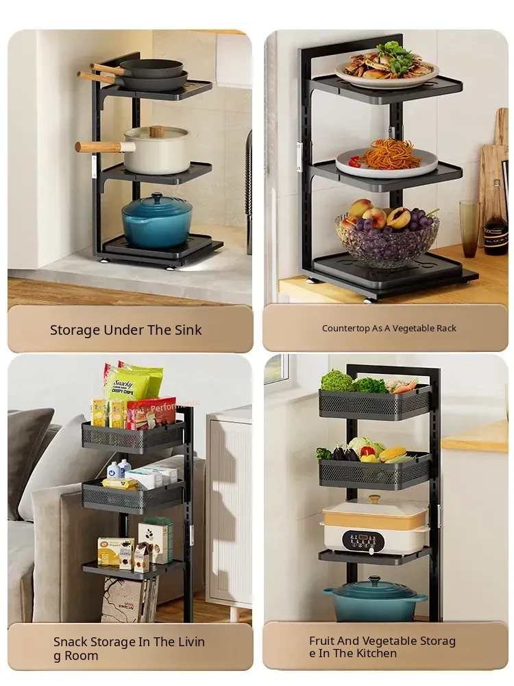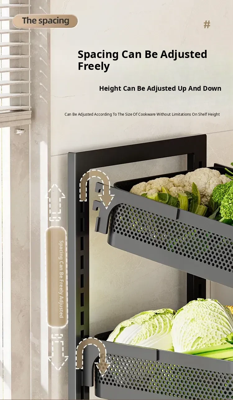 Multi-Layered Floor Stand Vegetable Storage Rack - Perfect for Kitchen Organization, Home Cabinet, and Snack Storage. Ideal for Efficient Space Management!