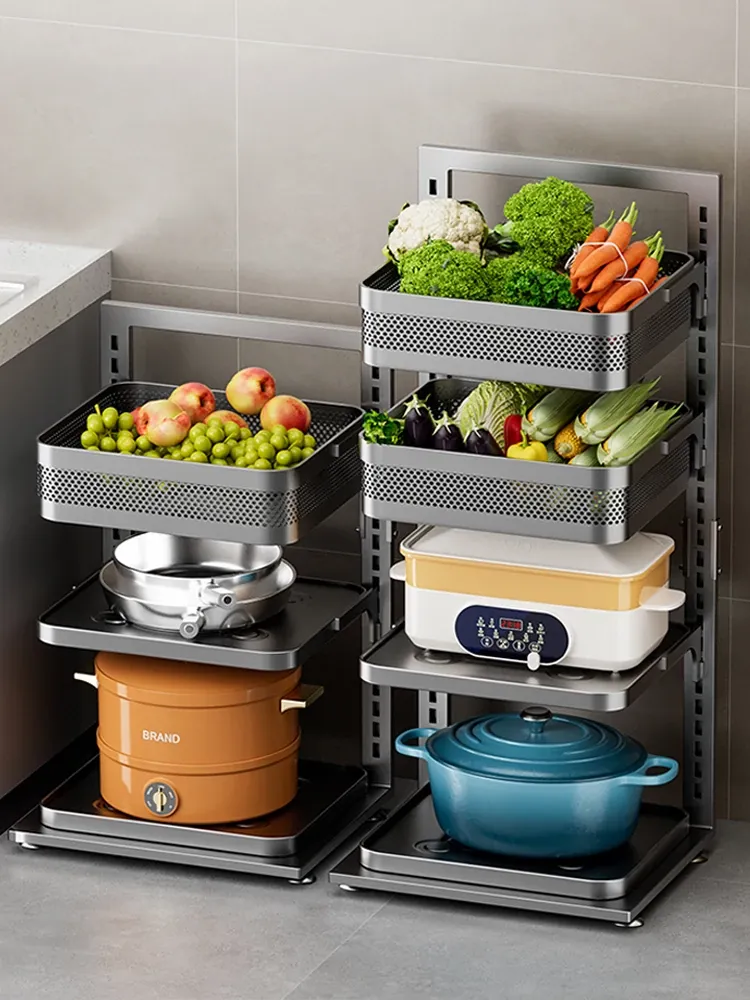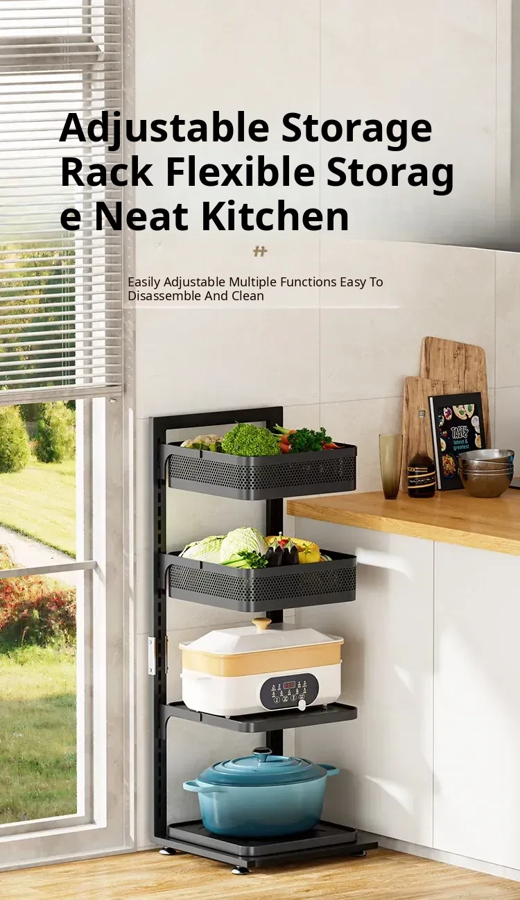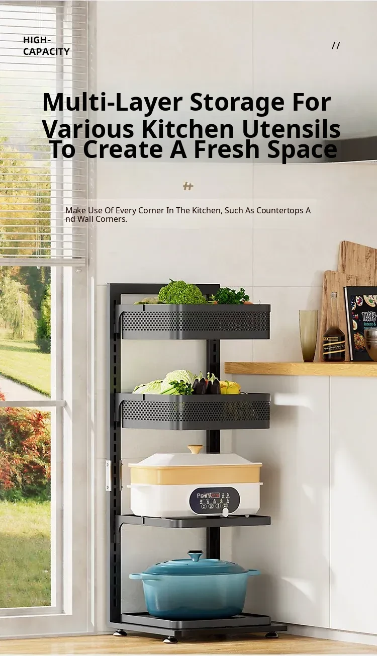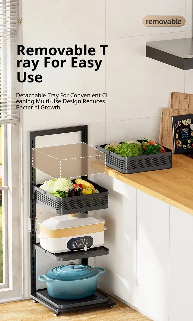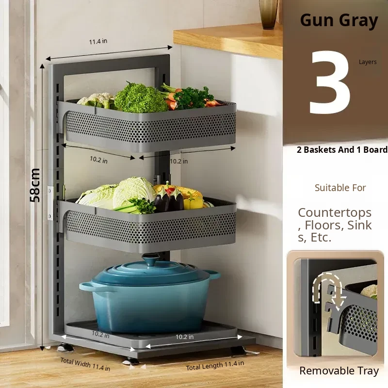 Multi-Layered Floor Stand Vegetable Storage Rack - Perfect for Kitchen Organization, Home Cabinet, and Snack Storage. Ideal for Efficient Space Management!