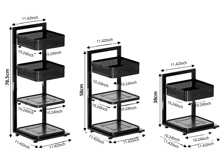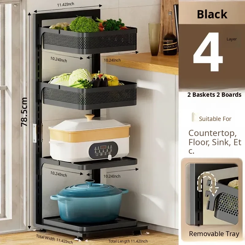 Adjustable Storage Basket [Black Four Layers] 2 Baskets 2 Boards