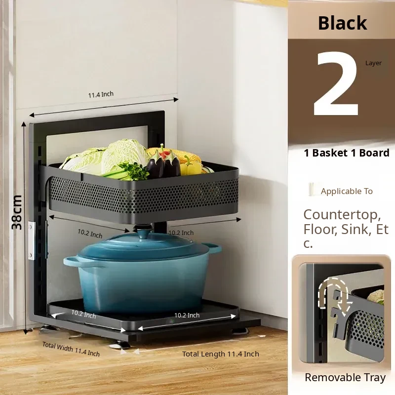 Adjustable Storage Basket [Black Three Layers] 2 Baskets 1 Board