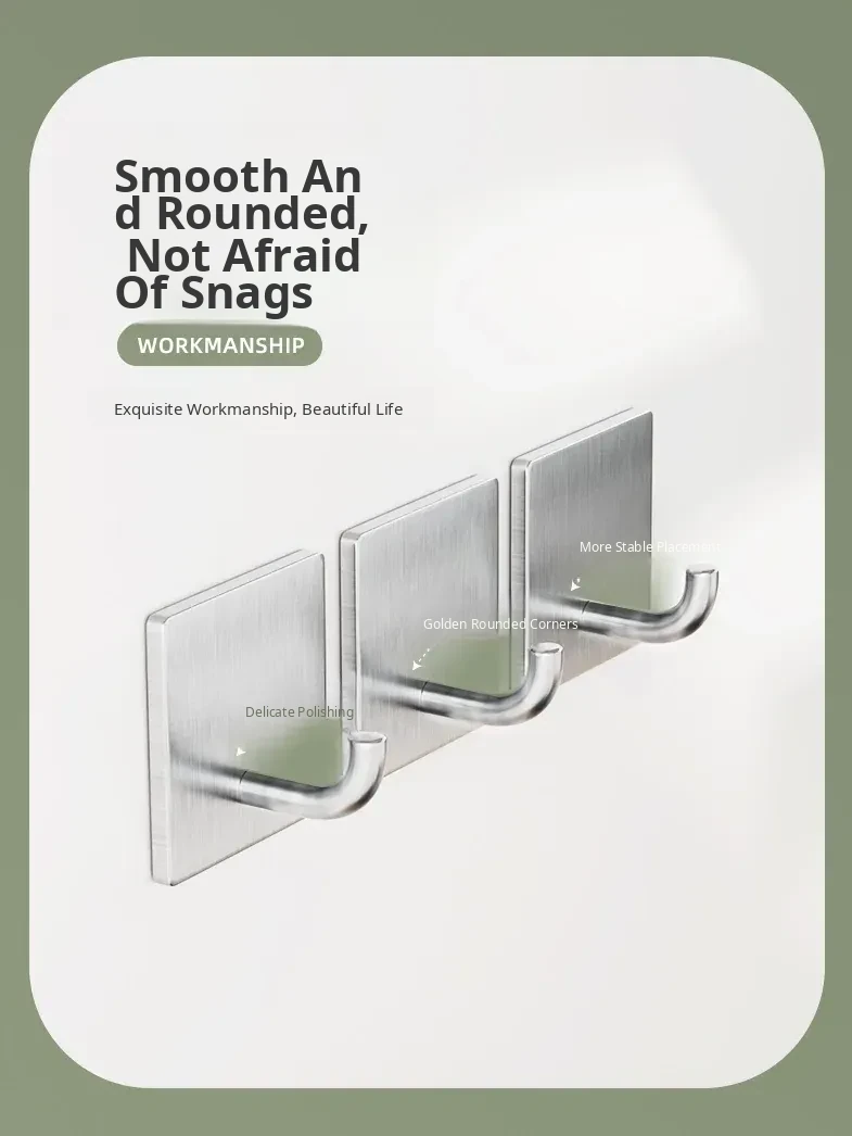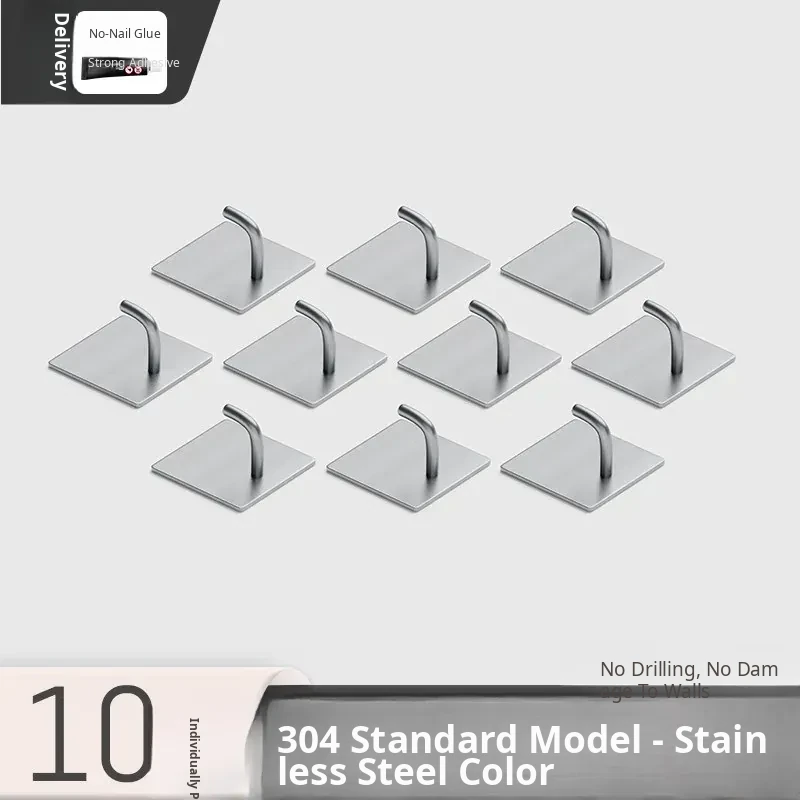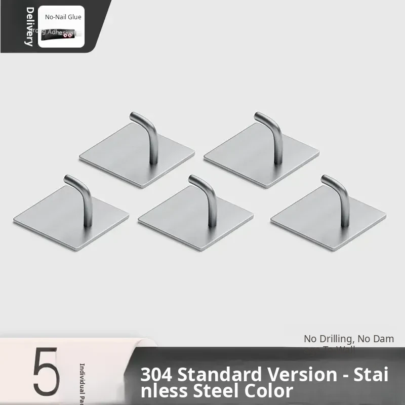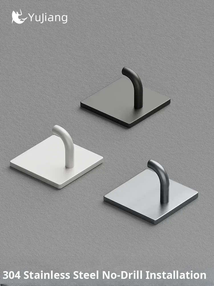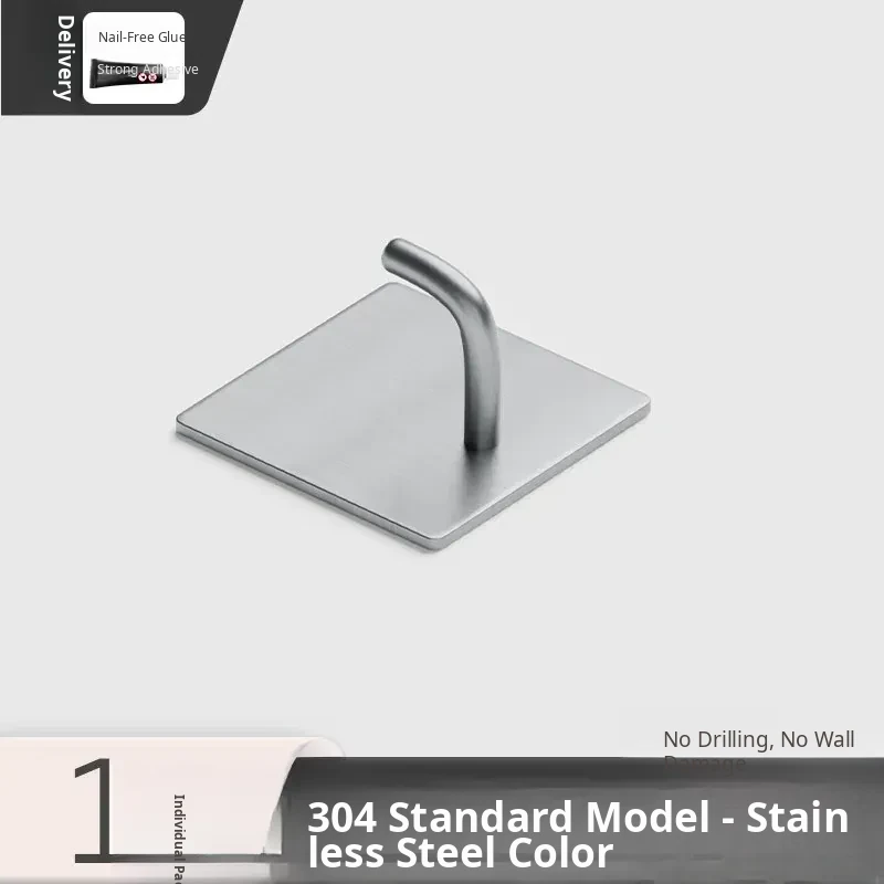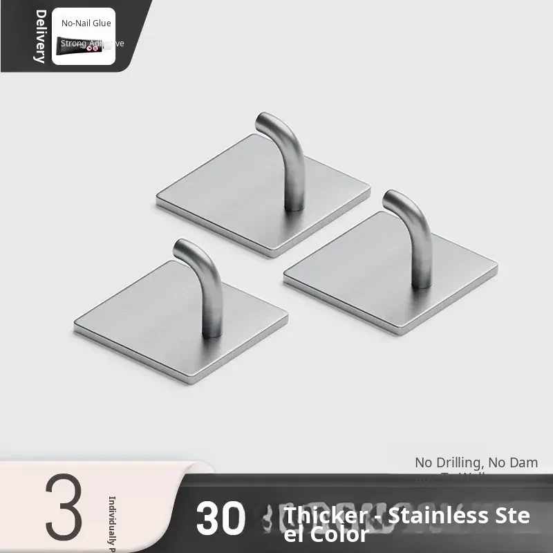 Powerful No-Drill Stainless Steel Hooks with Strong Adhesive - Wall-Mounted Heavy-Duty Hangers for Kitchen, Bathroom, and Behind Doors to Organize Clothes and Accessories.