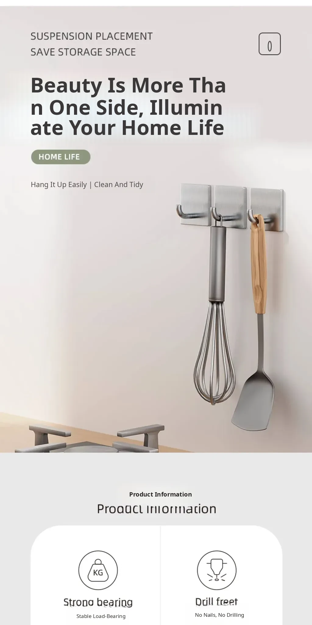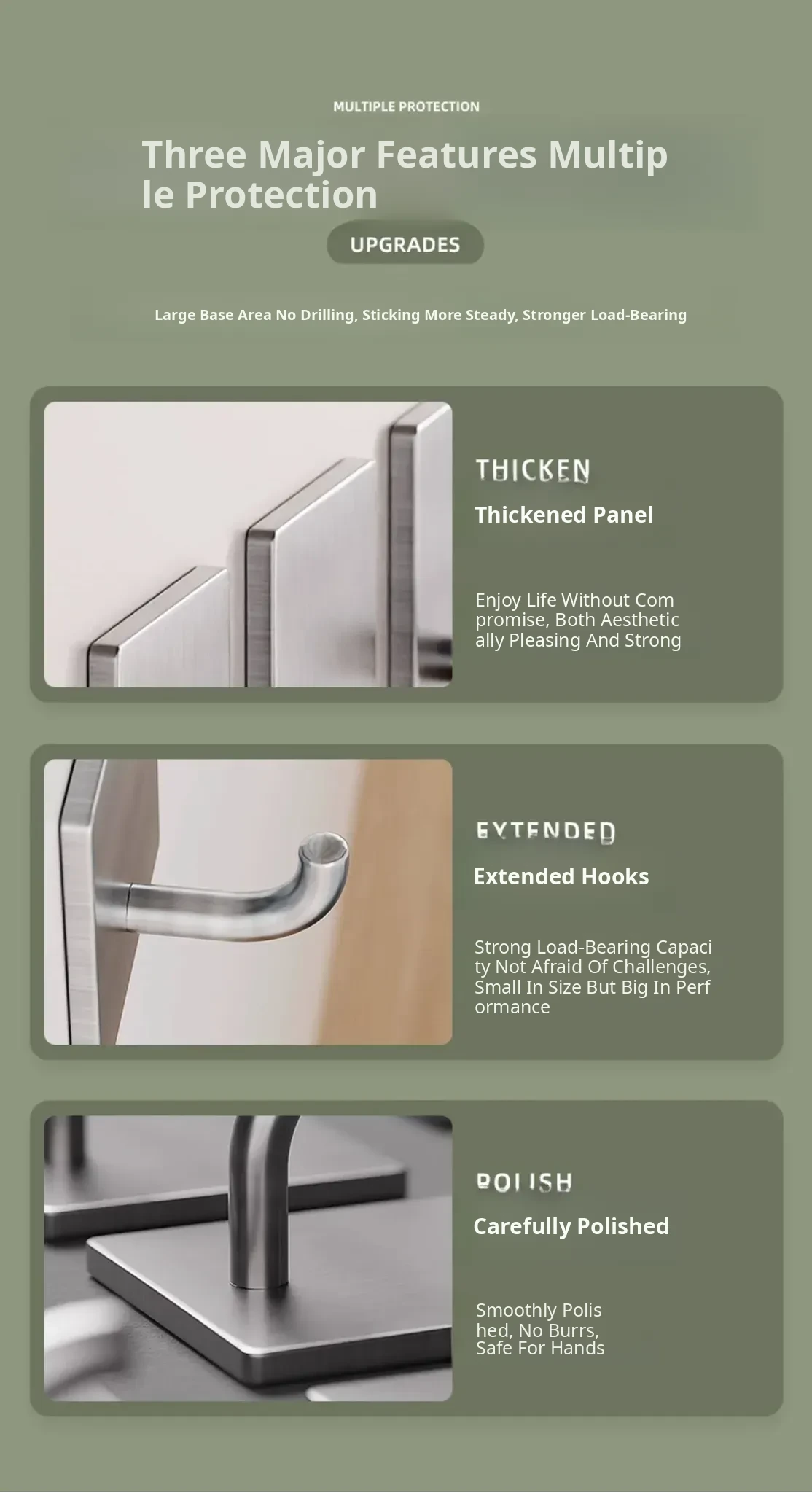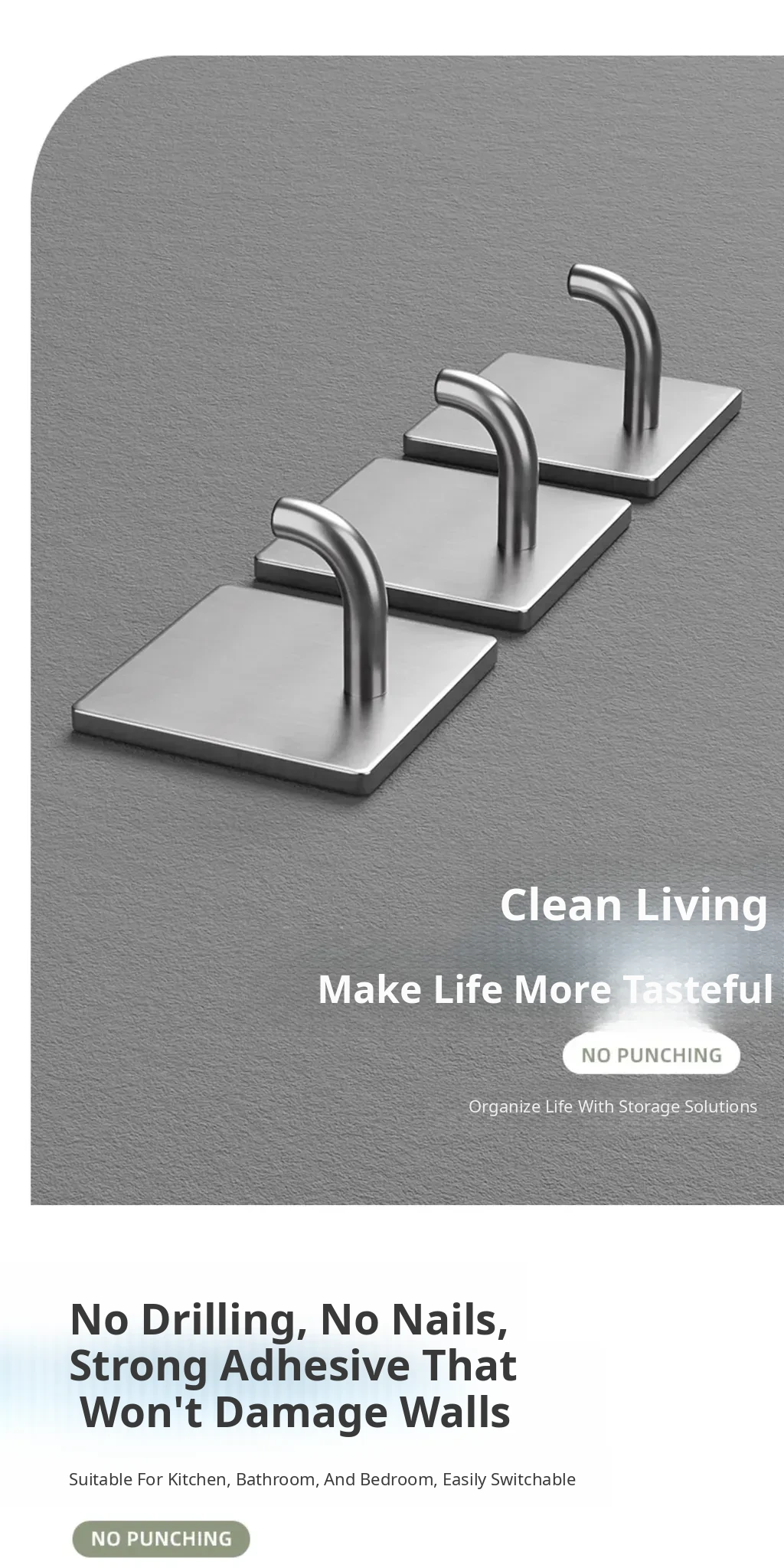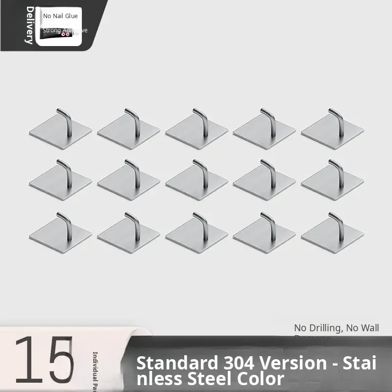 Powerful No-Drill Stainless Steel Hooks with Strong Adhesive - Wall-Mounted Heavy-Duty Hangers for Kitchen, Bathroom, and Behind Doors to Organize Clothes and Accessories.
