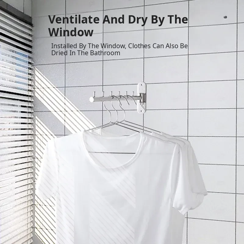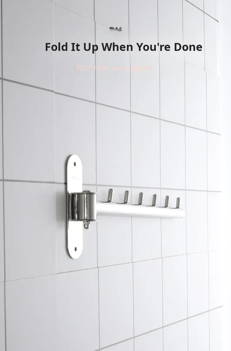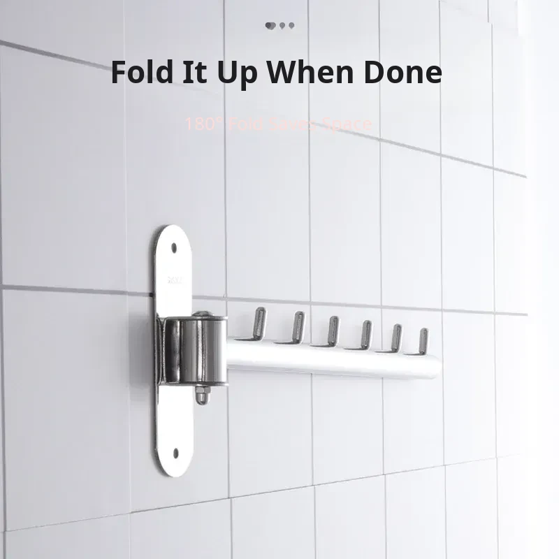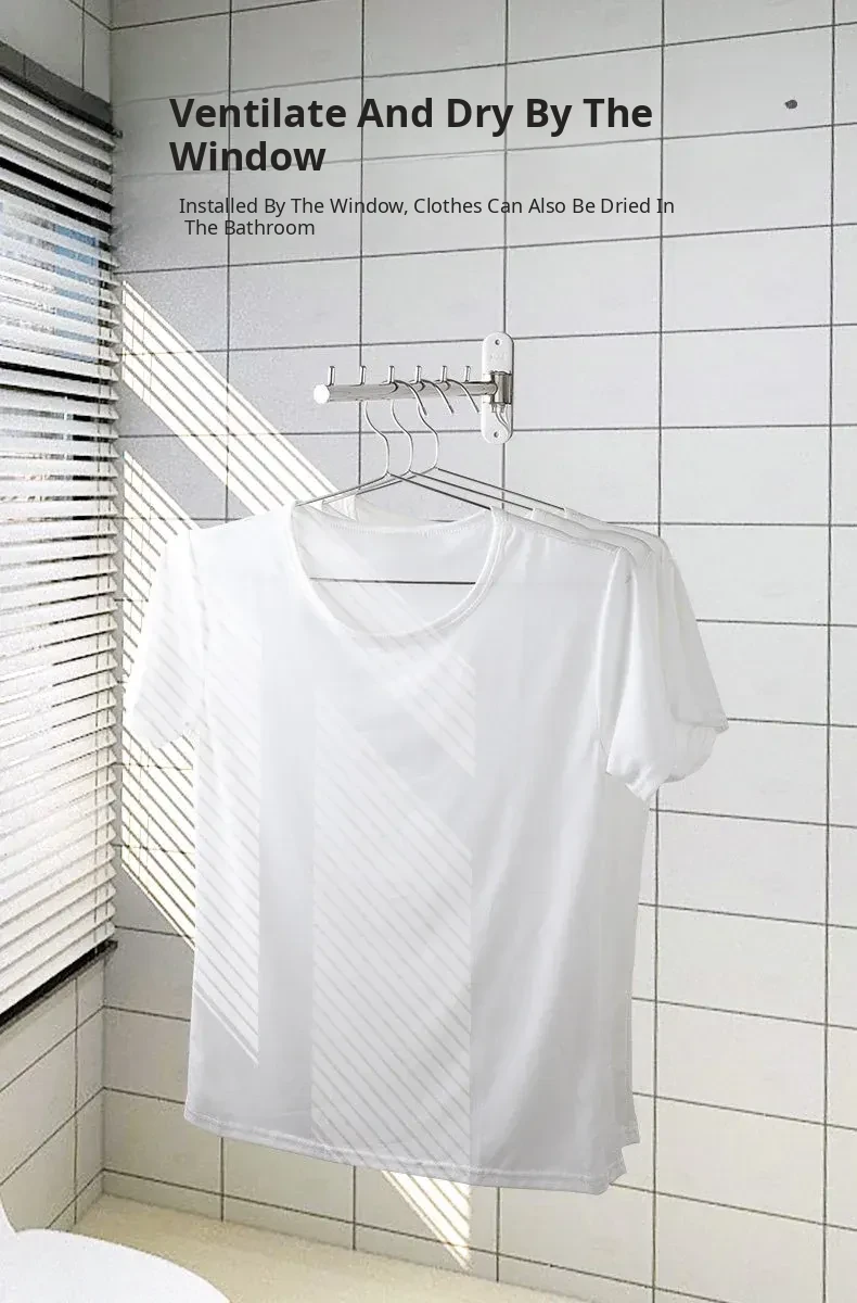 Revolutionary Rotating Clothes Drying Rack – No Drilling Required! Ideal for Bathrooms, Balconies, and Windows. Space-Saving Foldable Design with Durable Stainless Steel Hooks – Wall-Mounted for Ultimate Convenience!