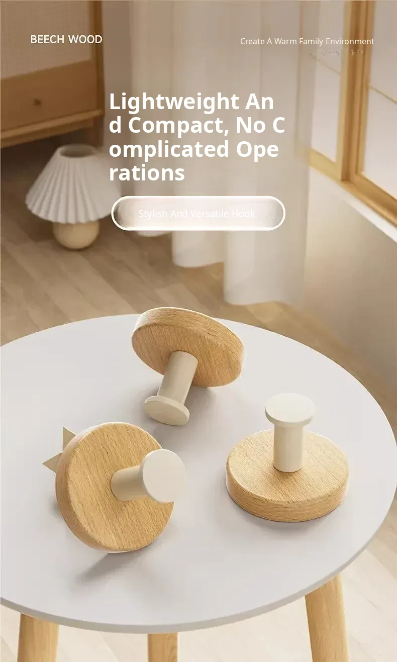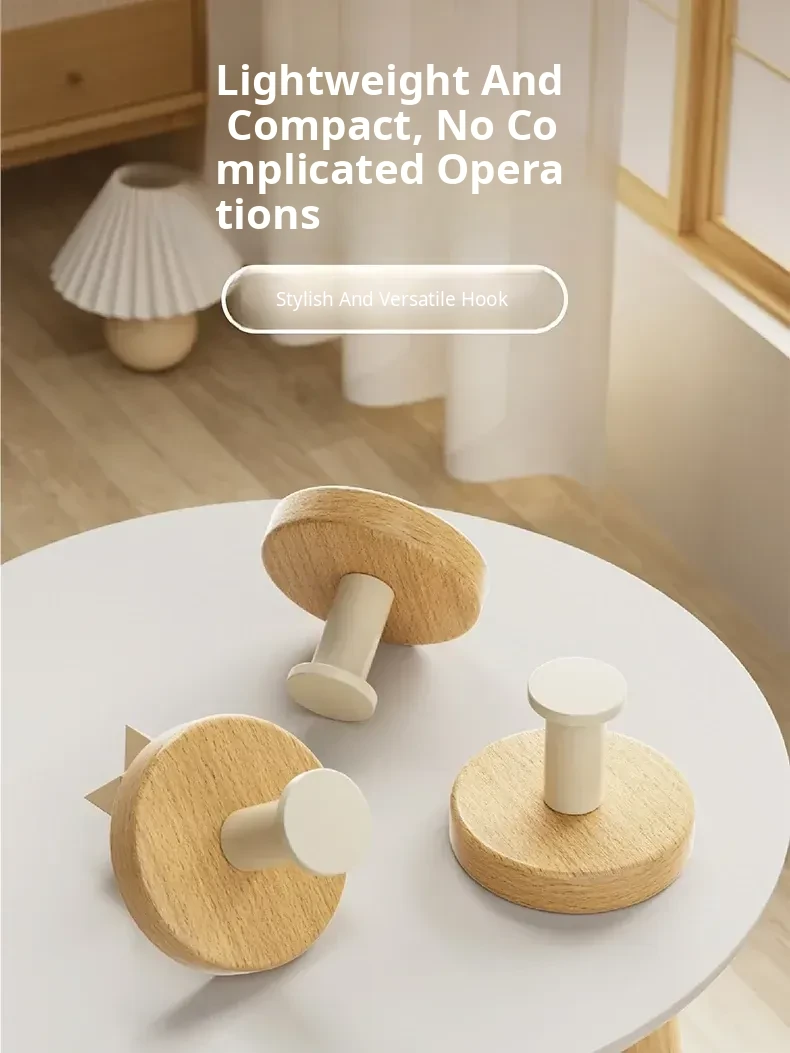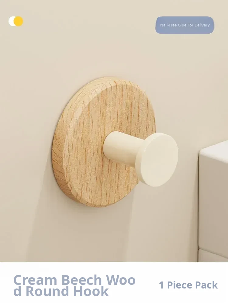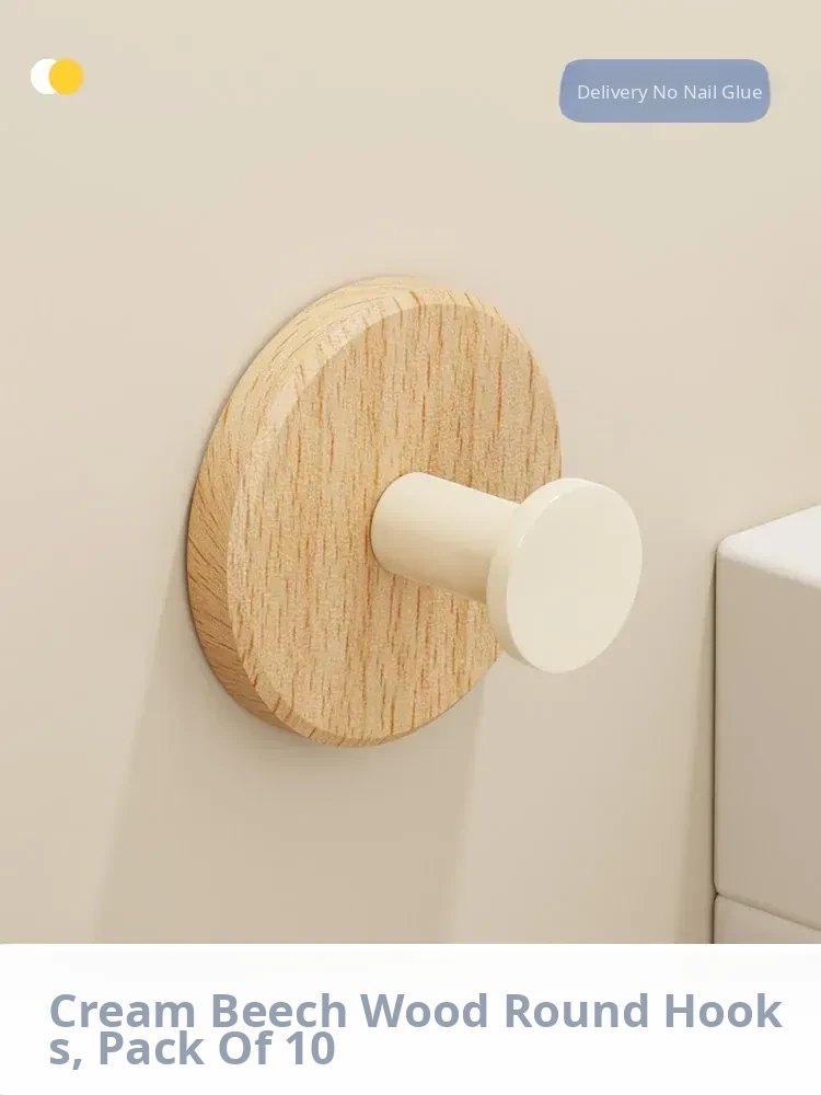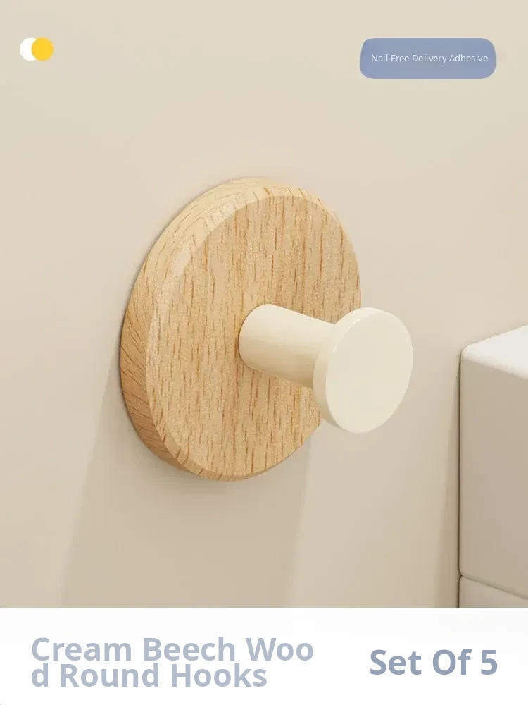Strong Adhesive Cream Wall Hooks - No Drill, Perfect for Hanging Coats, Towels, and Hats on Doors and Walls. Made of Durable Solid Wood, Easy to Install and Perfect for Any Home Decor!