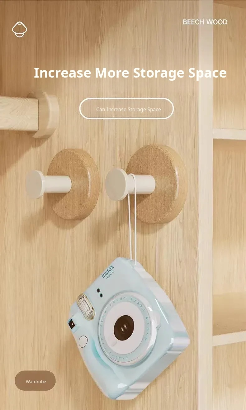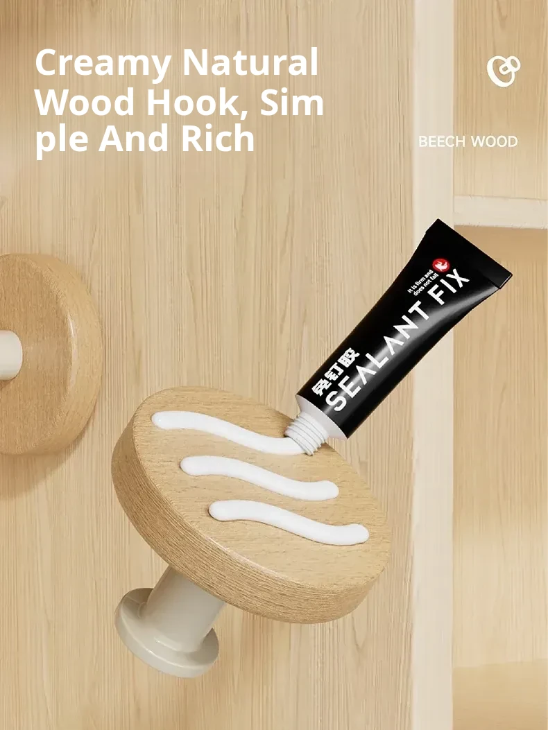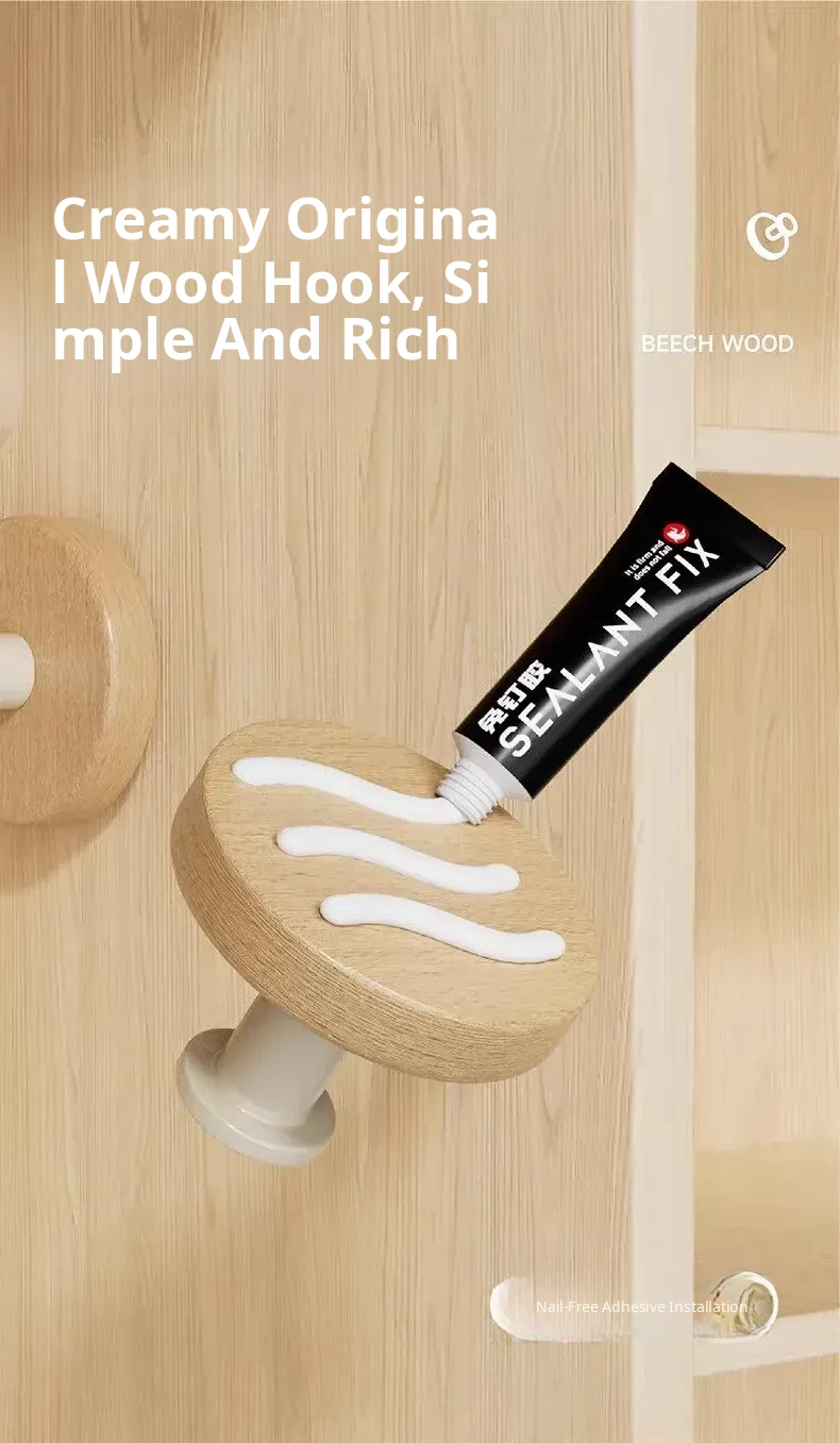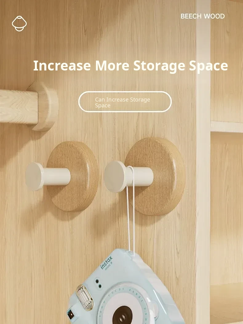 Strong Adhesive Cream Wall Hooks - No Drill, Perfect for Hanging Coats, Towels, and Hats on Doors and Walls. Made of Durable Solid Wood, Easy to Install and Perfect for Any Home Decor!