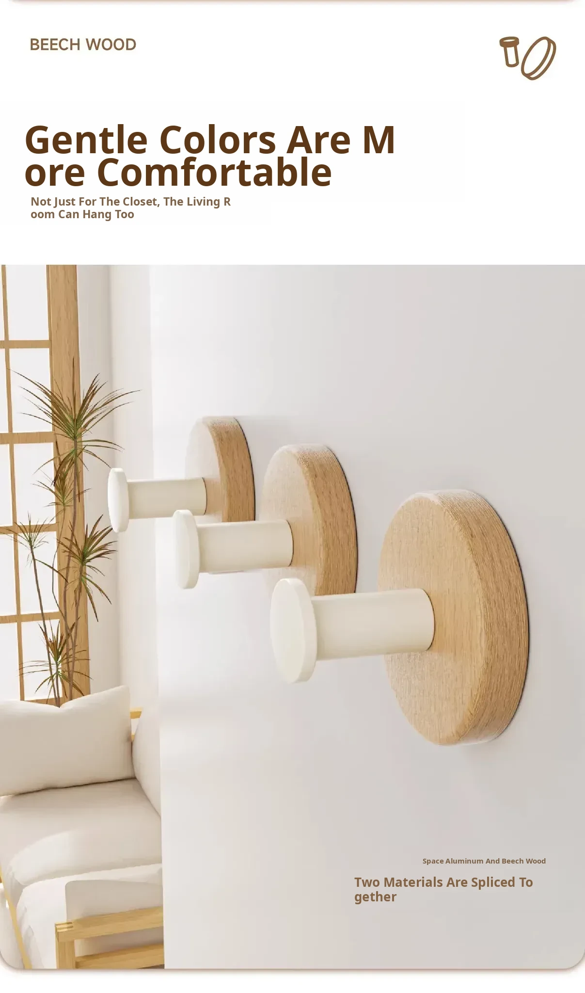 Cream Style-Beech [Round Hook 2 Pack]