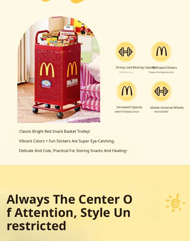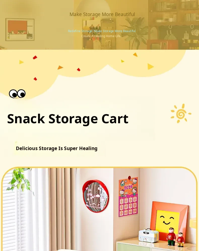 Stylish Snack Cart with Storage Bins - Portable Multi-Purpose Organizer for Living Room, Perfect for Snacks and Miscellaneous Items
