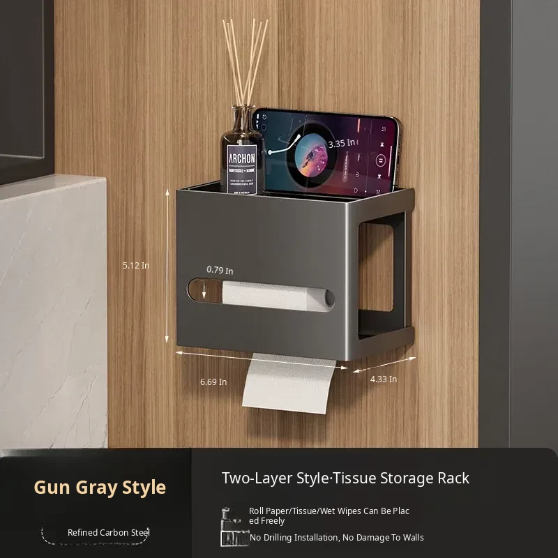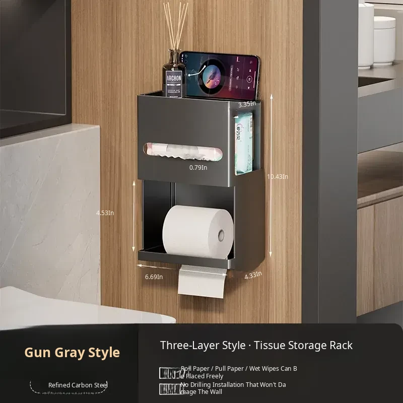 Thickened Carbon Steel Square Tissue Box [Gun Gray] Three-Layer Model