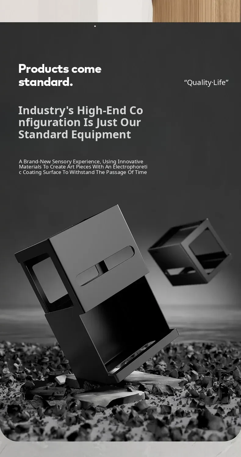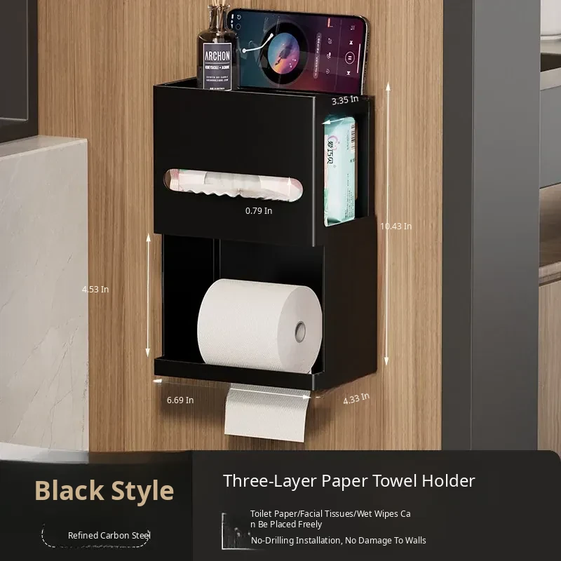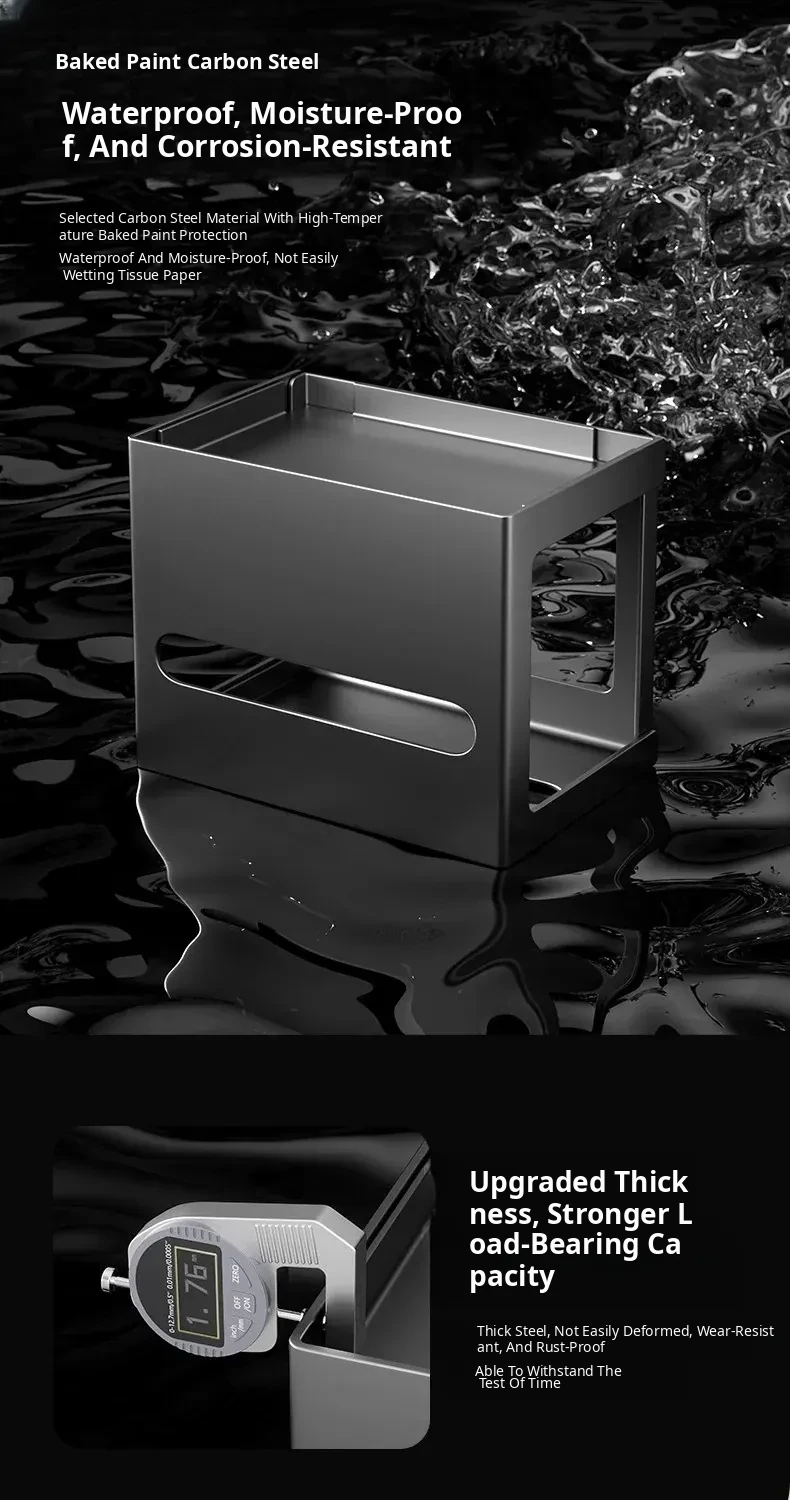 Thickened Carbon Steel Square Tissue Box [Black] Three-Layer Model