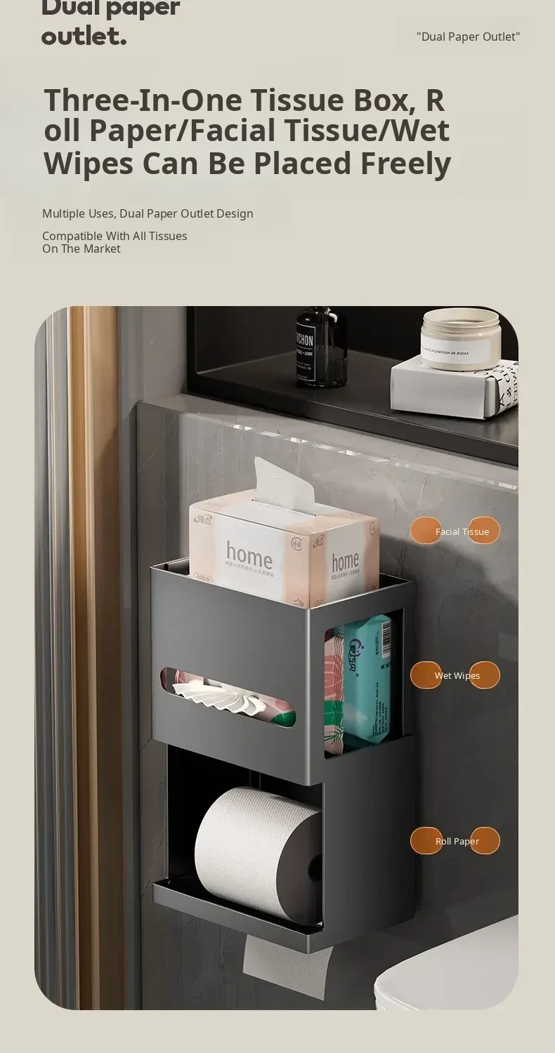 Stylish Wall-Mounted Tissue Box - Multi-Functional Paper Holder for Facial Tissues, Toilet Paper, and More - Perfect for Bathrooms and Home Decor!