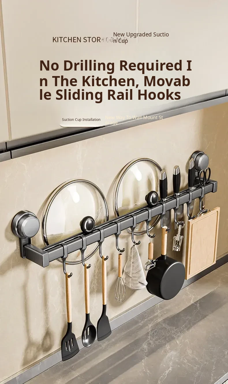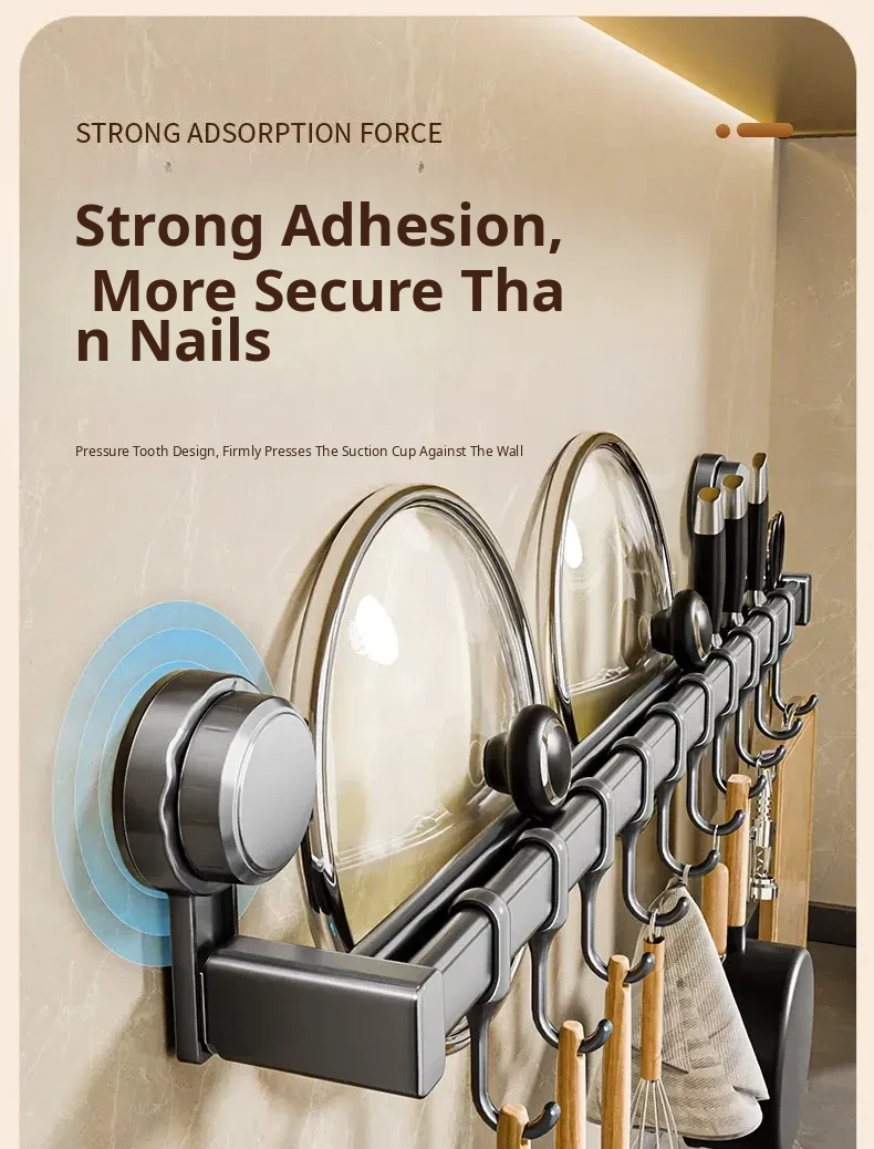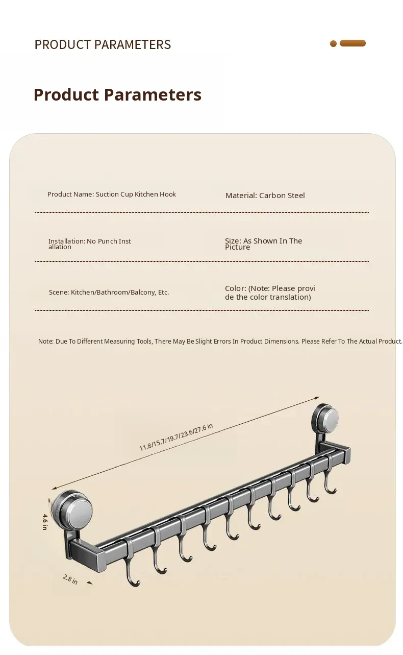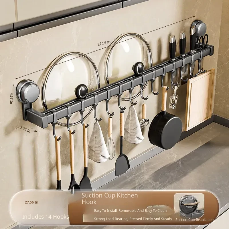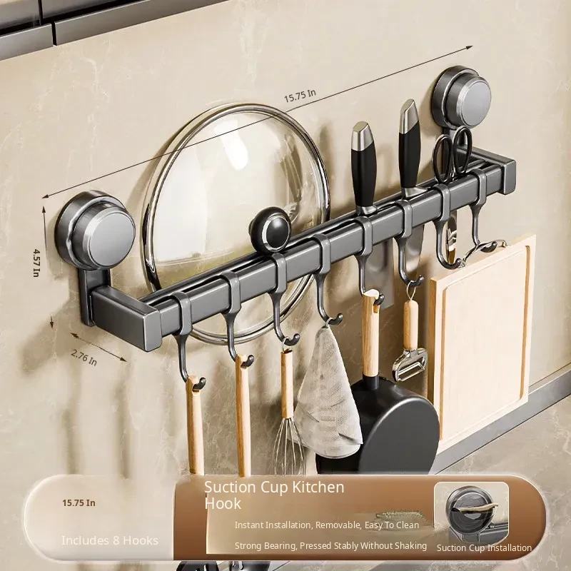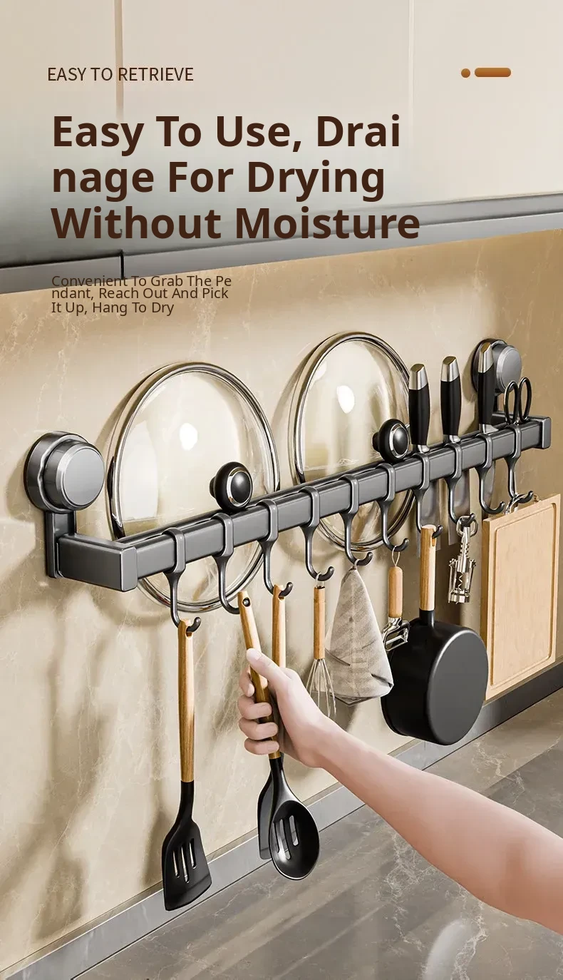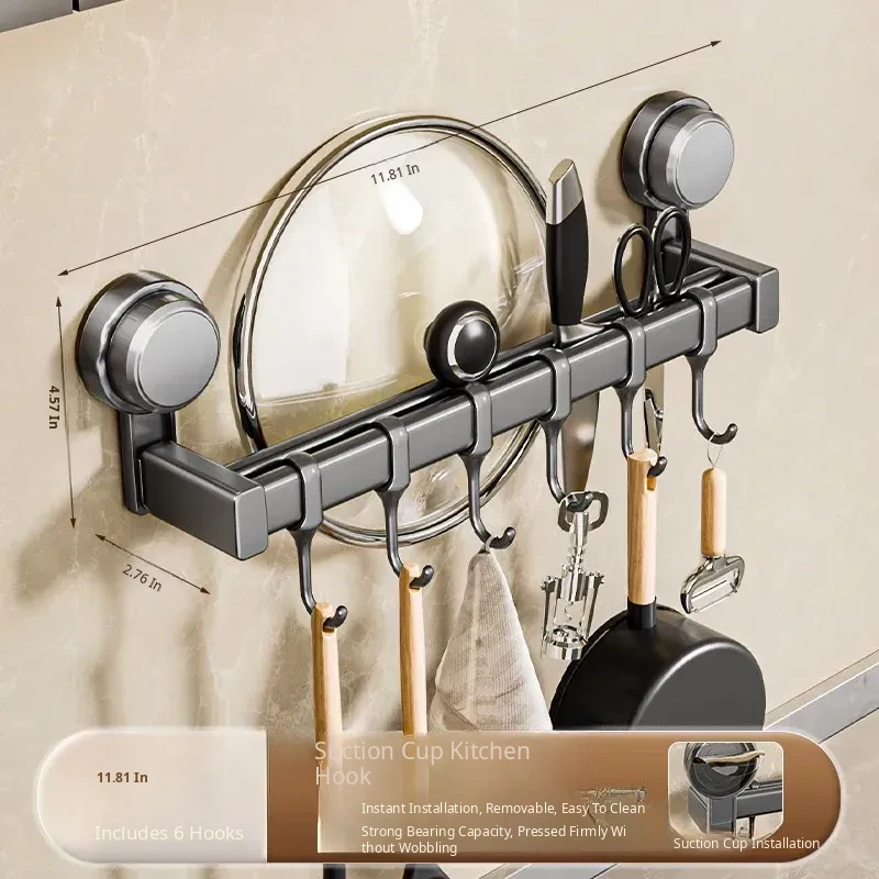 Suction Cup Kitchen Hook Rack - No Drill Hanging Organizer for Utensils, Pots, and Knives - Space-Saving Storage Solution for a Tidy Kitchen