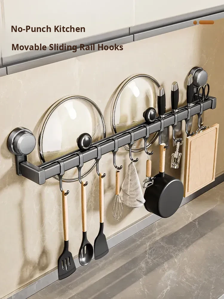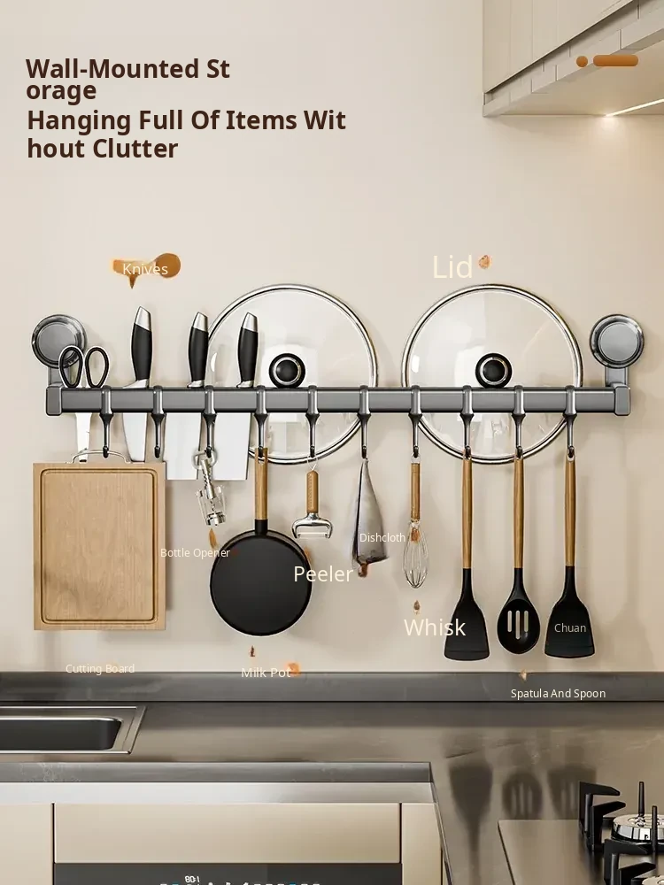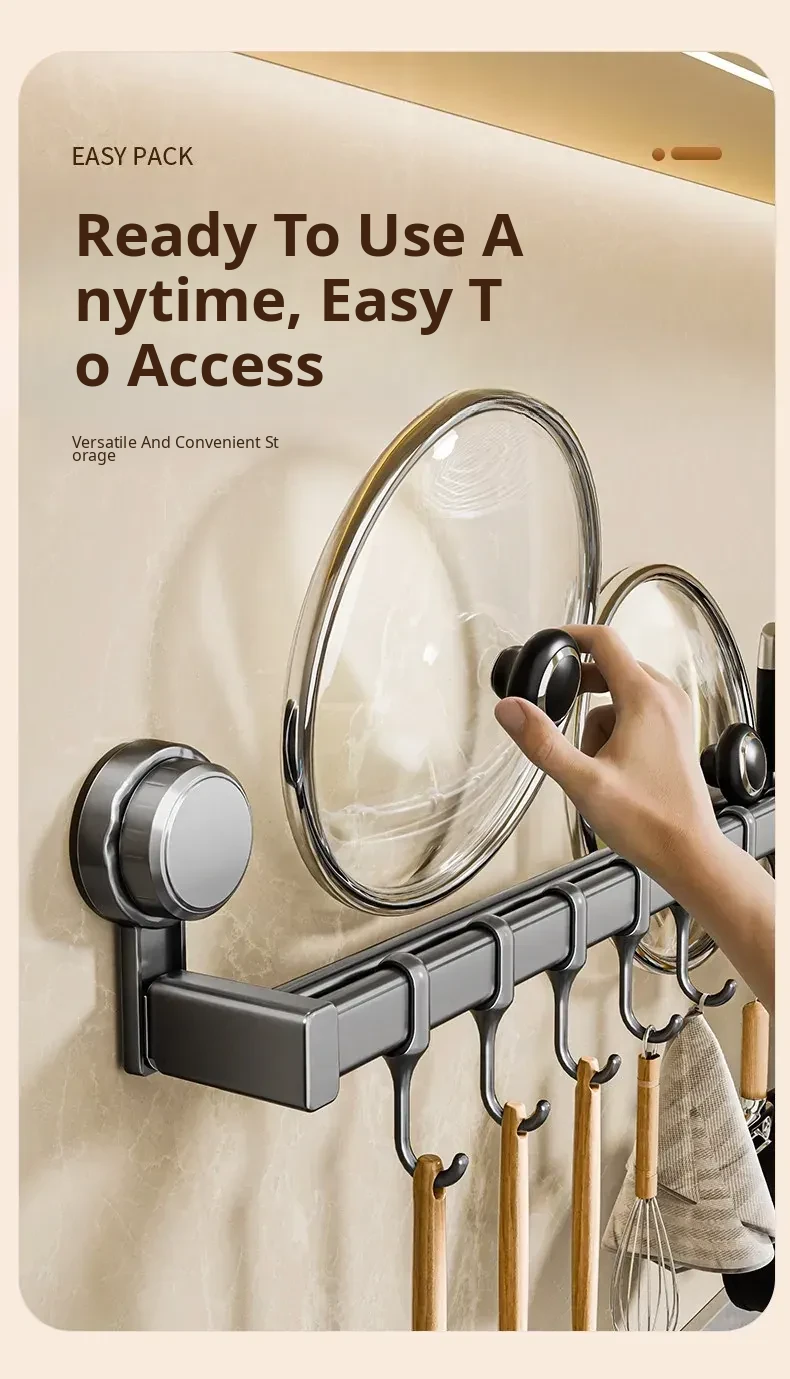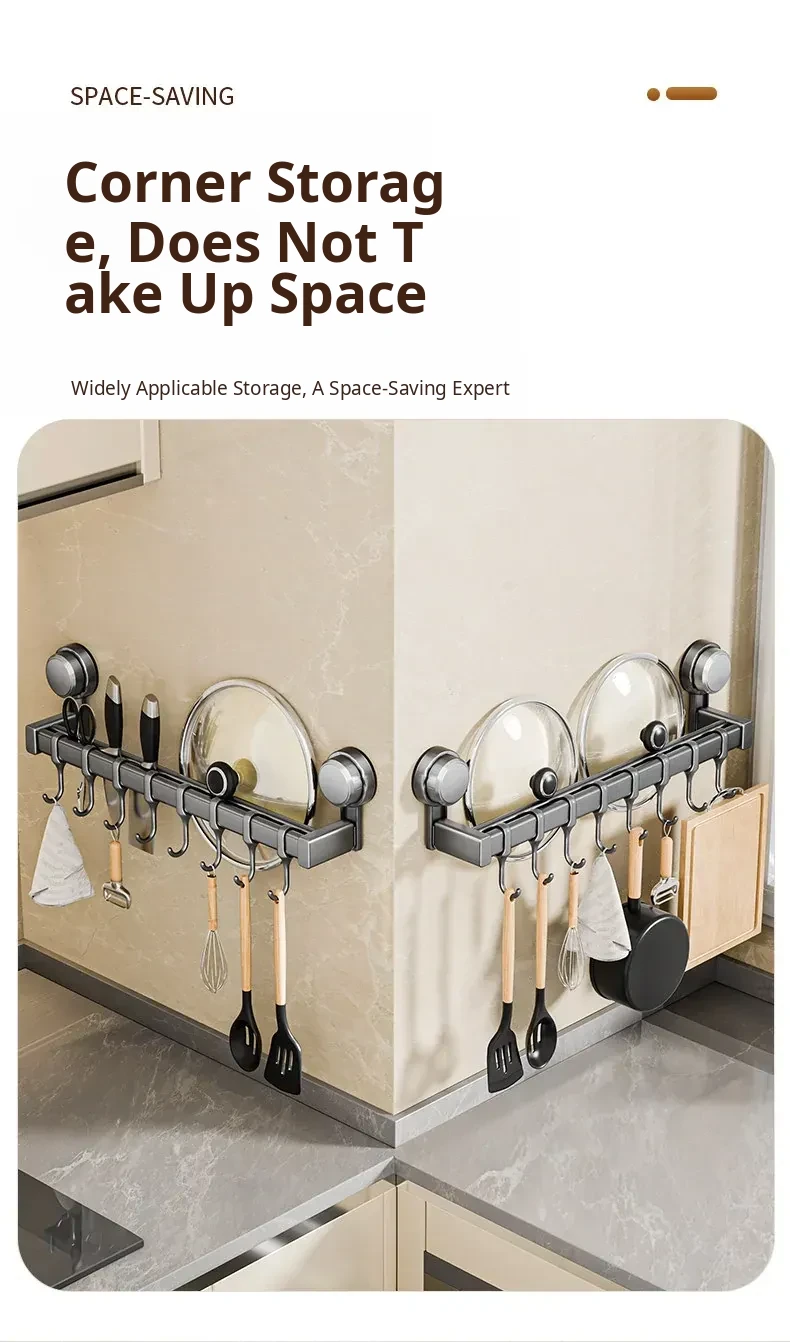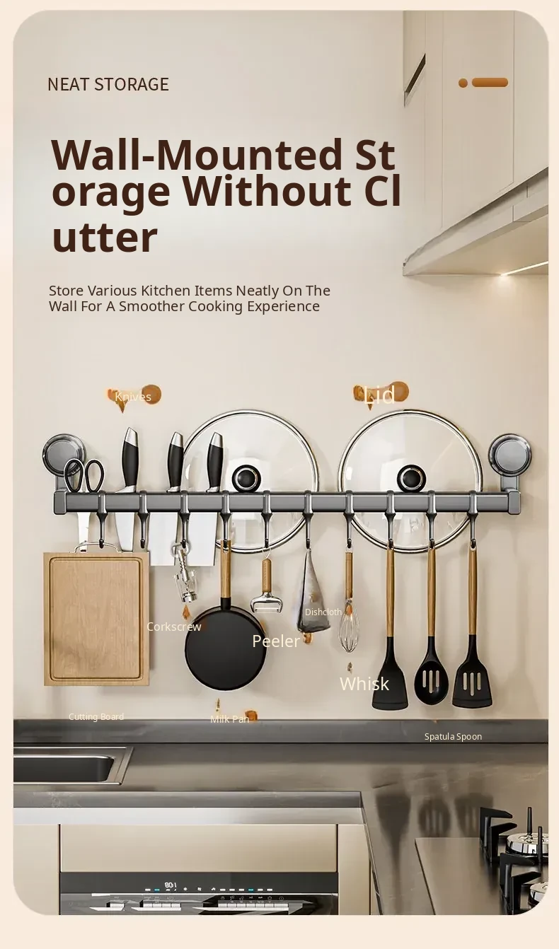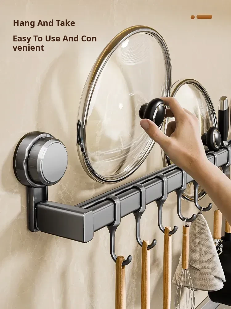 Suction Cup Kitchen Hook Rack - No Drill Hanging Organizer for Utensils, Pots, and Knives - Space-Saving Storage Solution for a Tidy Kitchen